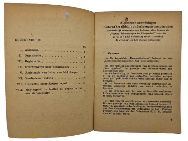 Original WW2 Dutch LBD Document - Luchtbeschermingsdienst The Hague ''Algemeene aanwijzingen'' (1944)