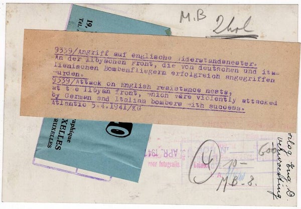Originele WO2 Duitse Persfoto - Luftwaffe bombardement op een Britse basis, Libië (1941)