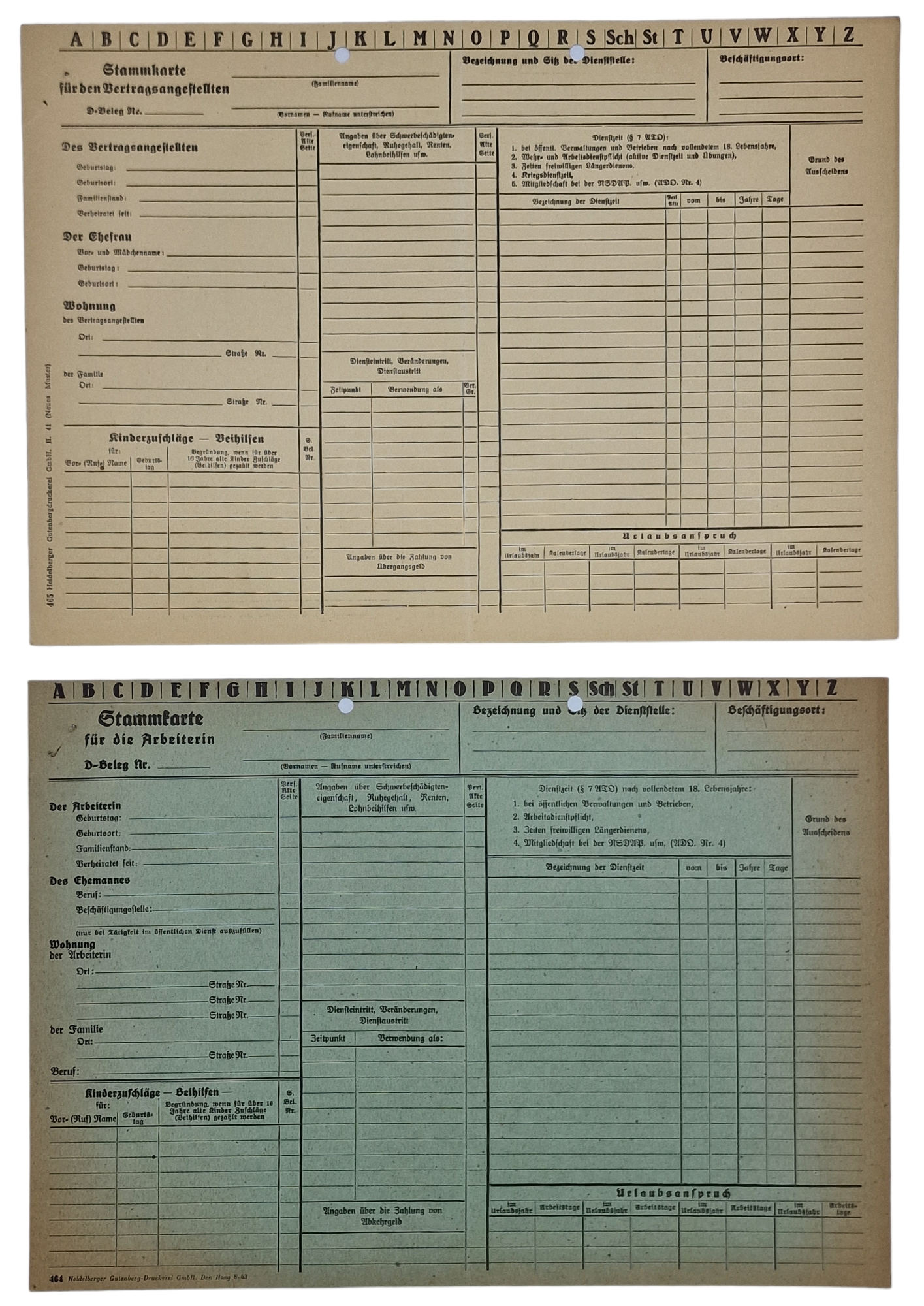 Original WW2 Dutch Document - Stammkarte für die Arbeitererin & Vertragsangestellten, The Hague (1941)