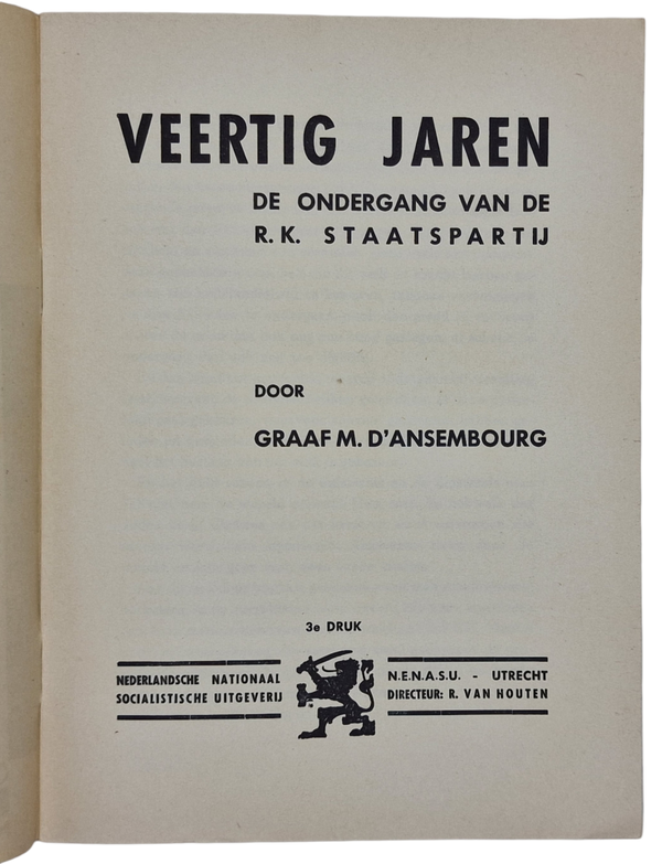 Original WW2 Dutch Collaboration NSB Brochure - 40 Jaren! de Ondergang van de RKSP, Graaf M. D'ansembourg