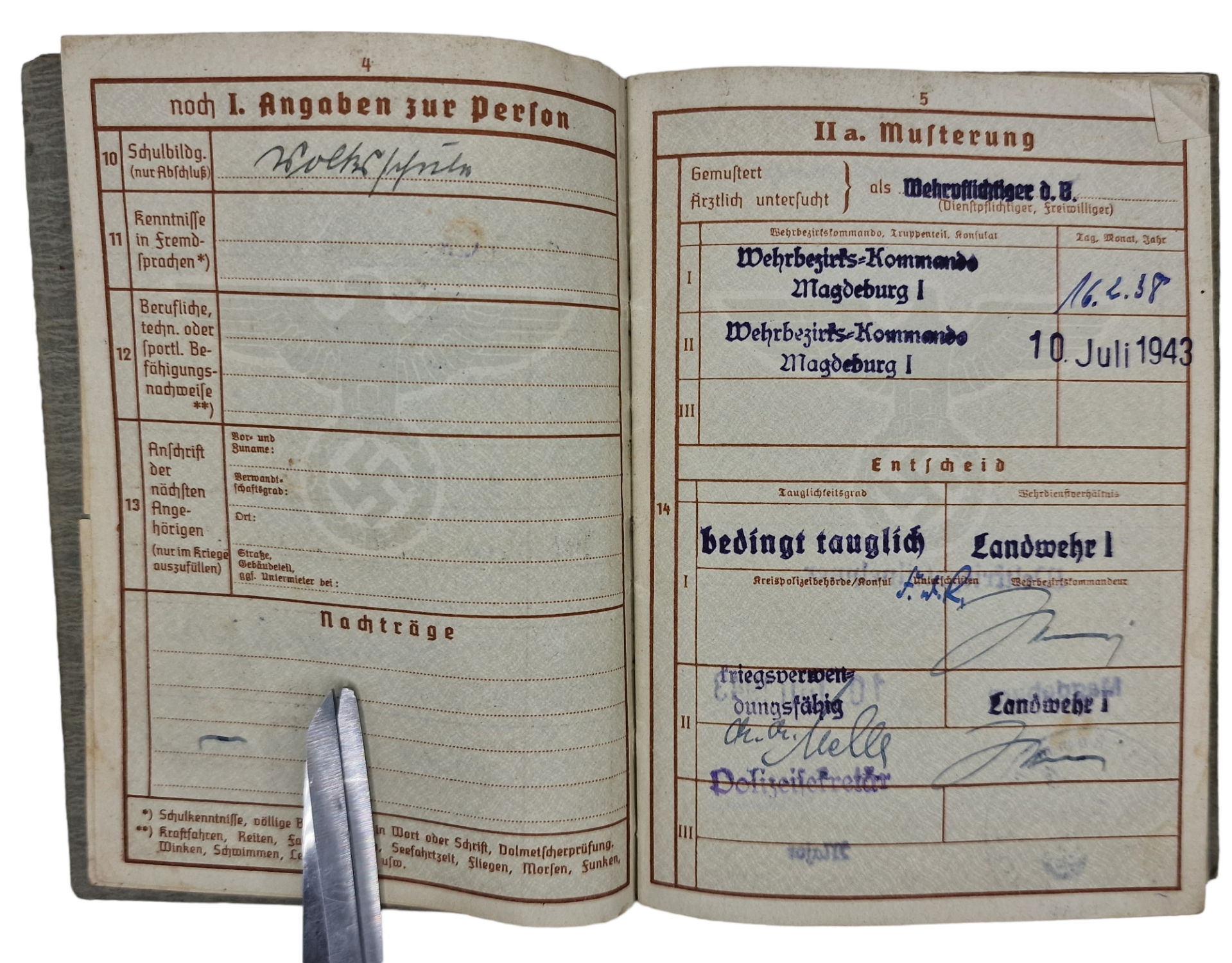 Original WW2 German Document - Wehrpass Magdeburg (1938)