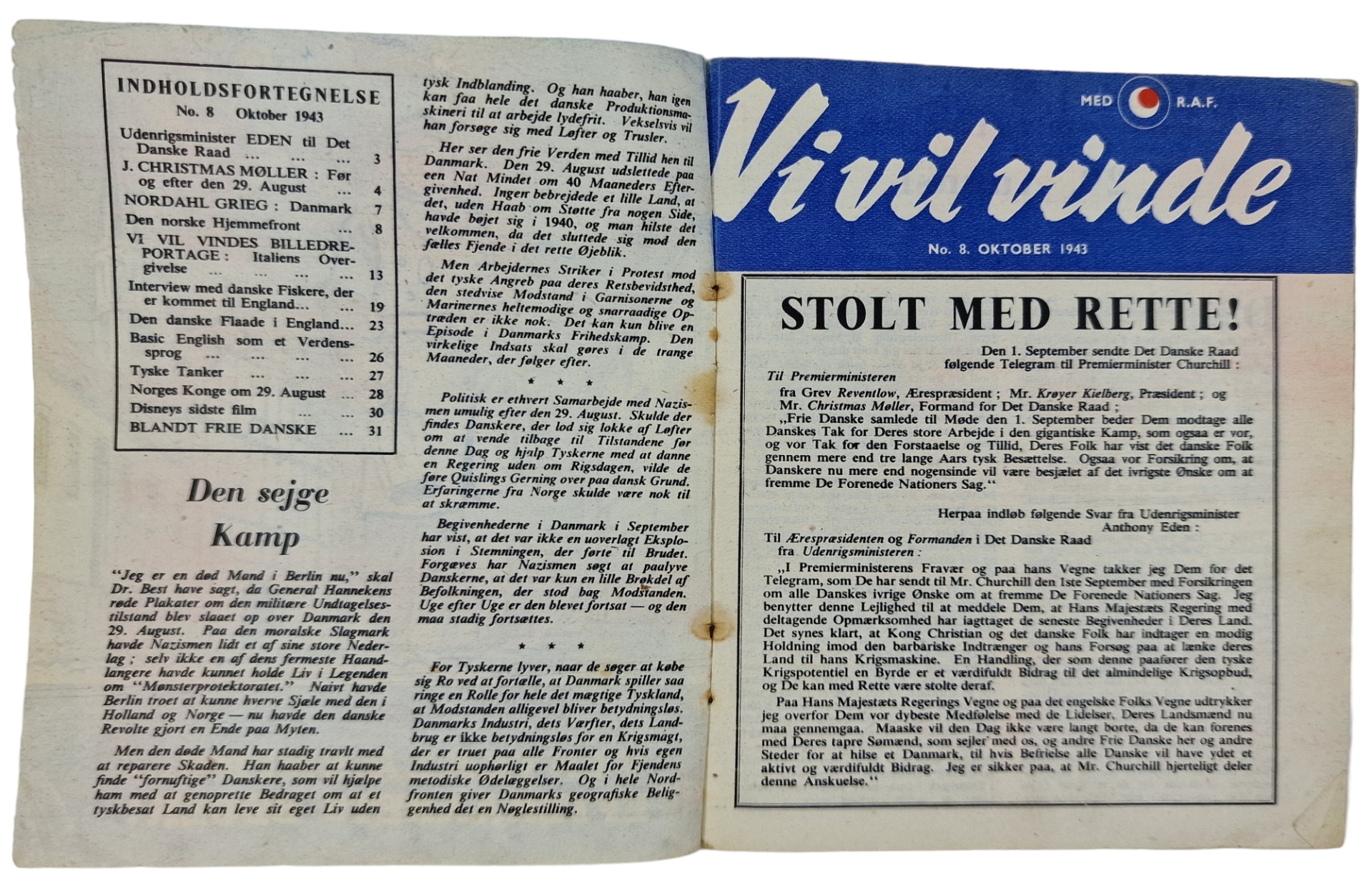 Original WW2 Danish Leaflet- D 24 Vi vil vinde Nr. 8 ''Vinterlaesing.. Efteraarets Boger!'' (1943)