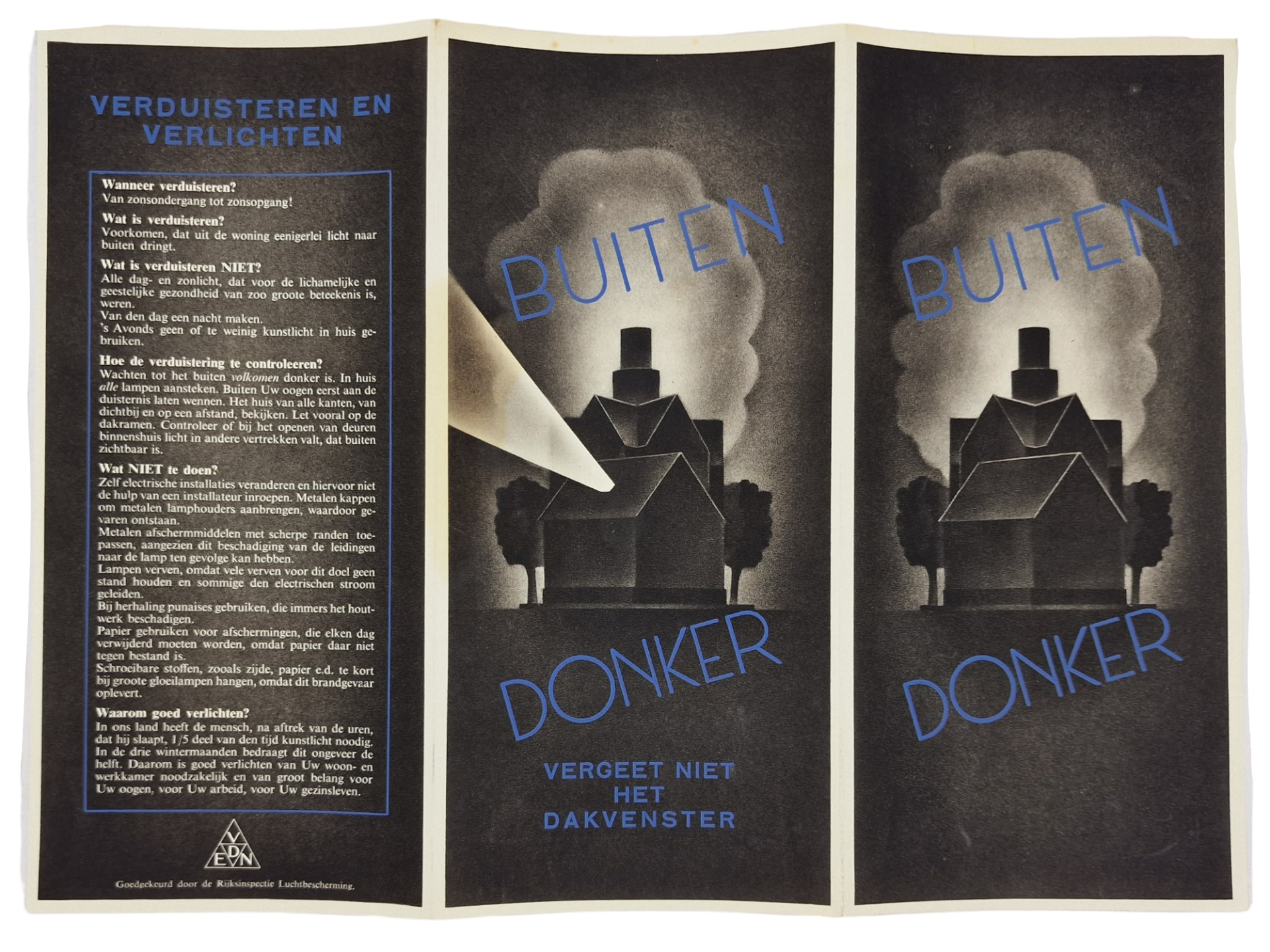 Original WW2 Dutch LBD Document - Luchtbeschermingsdienst flyer ''Buiten Donker''