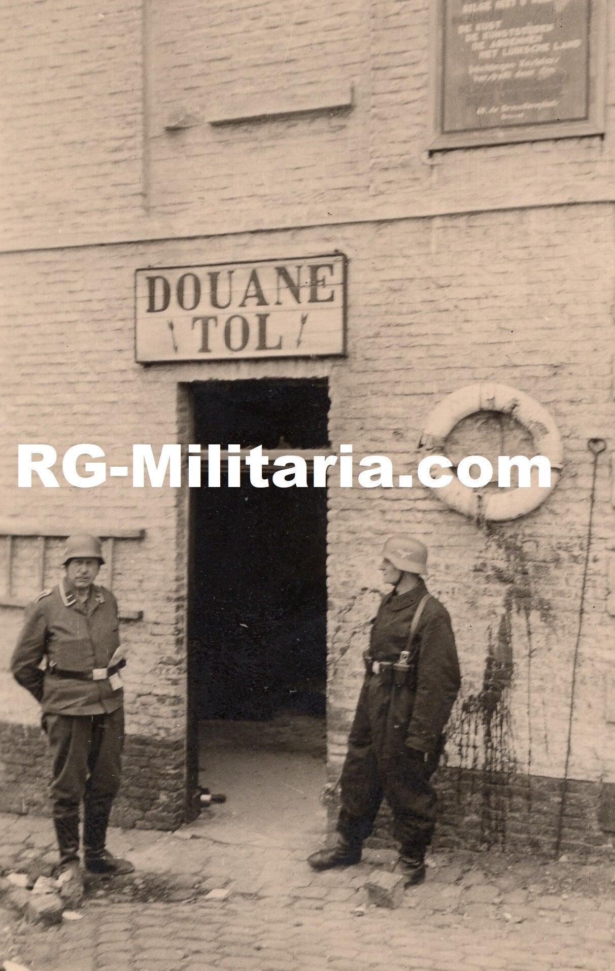 Originele Wo2 Duitse Foto - Luftwaffe militairen bij de Tol in Luik, België
