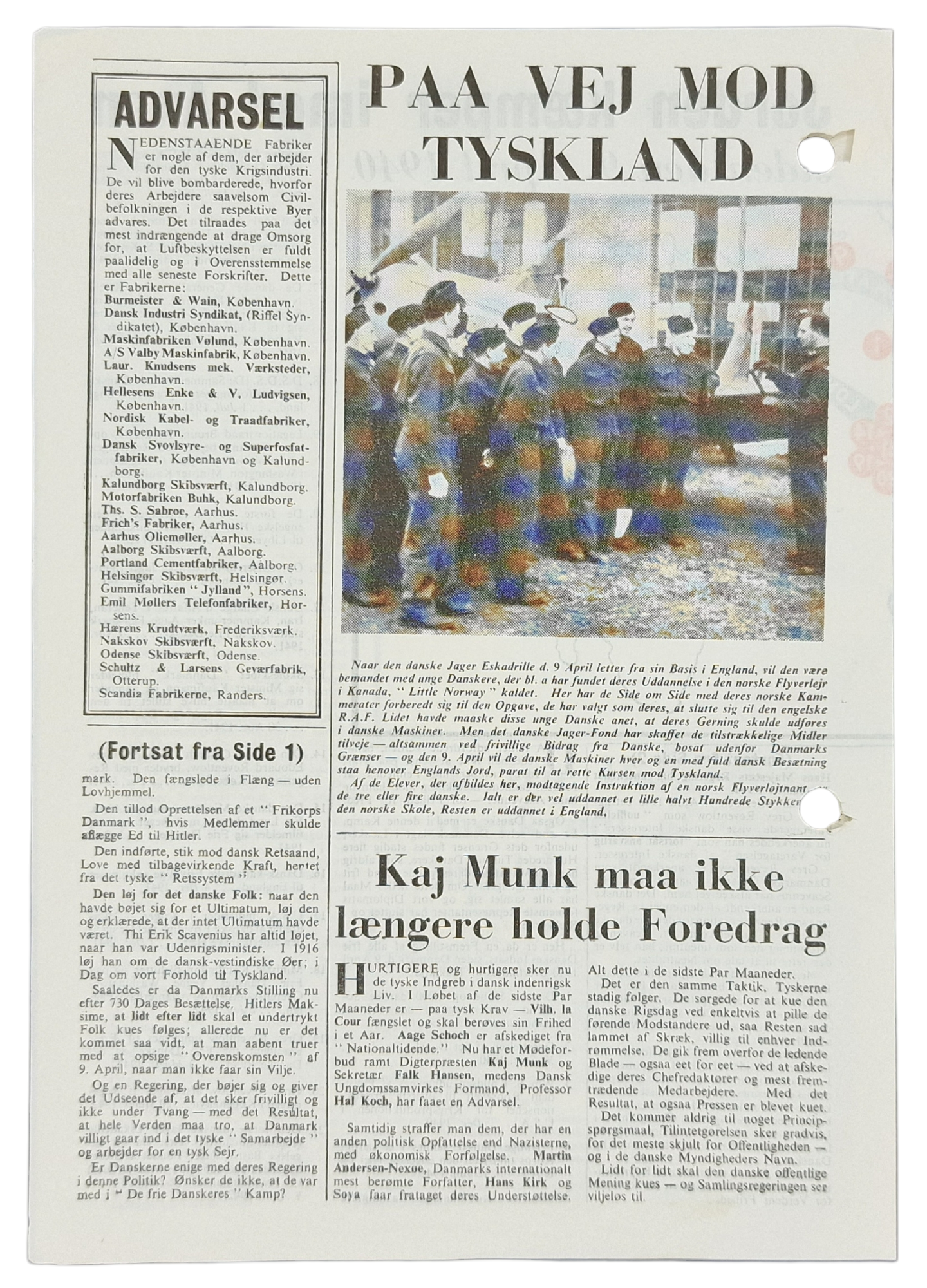 Brits pamflet voor Deense burgers. Geperforeerd.