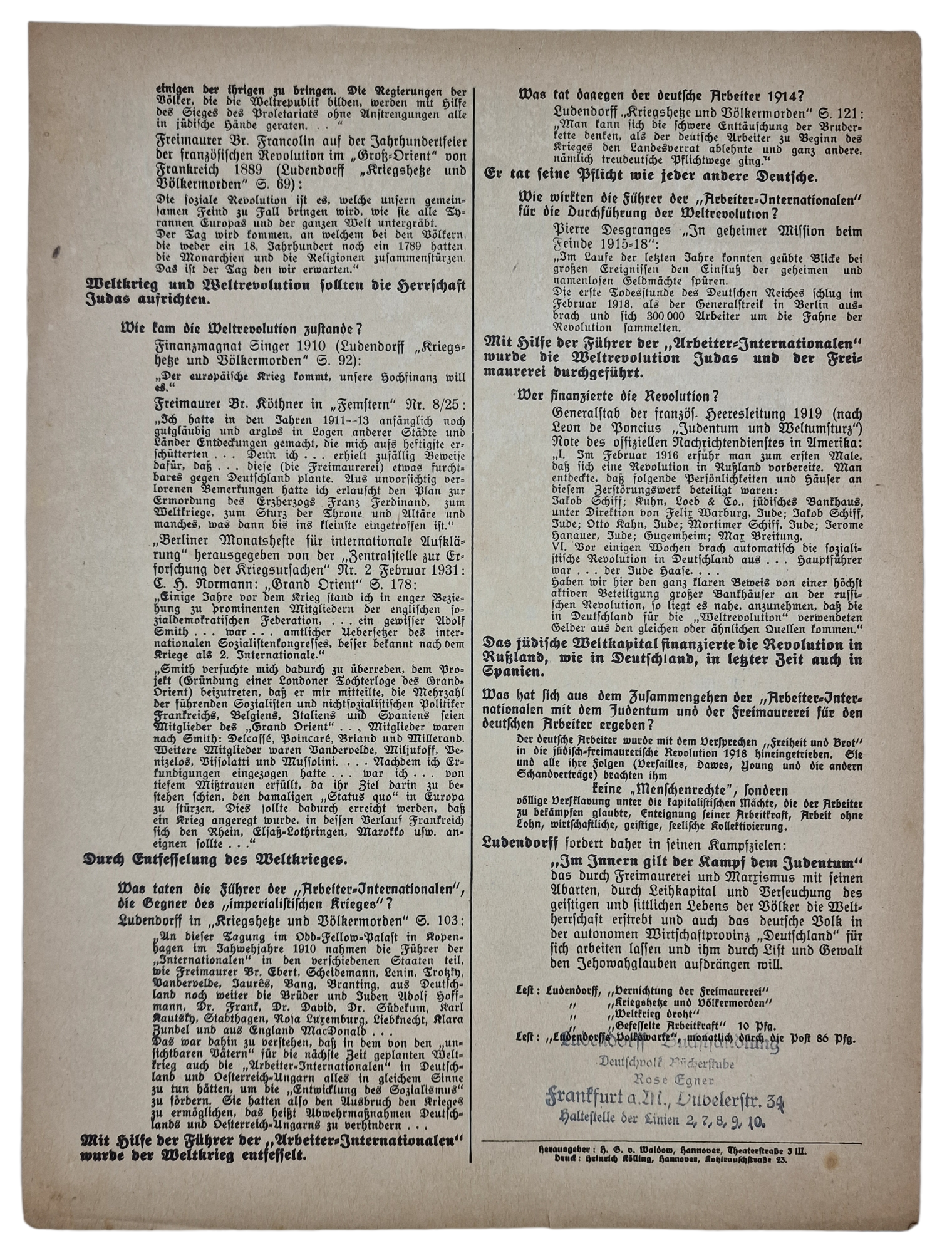 Origineel Wo2 Duits NSDAP Document - Ludendorff ''Die Internationale erkämpft das Menschenrecht!''? (1932)