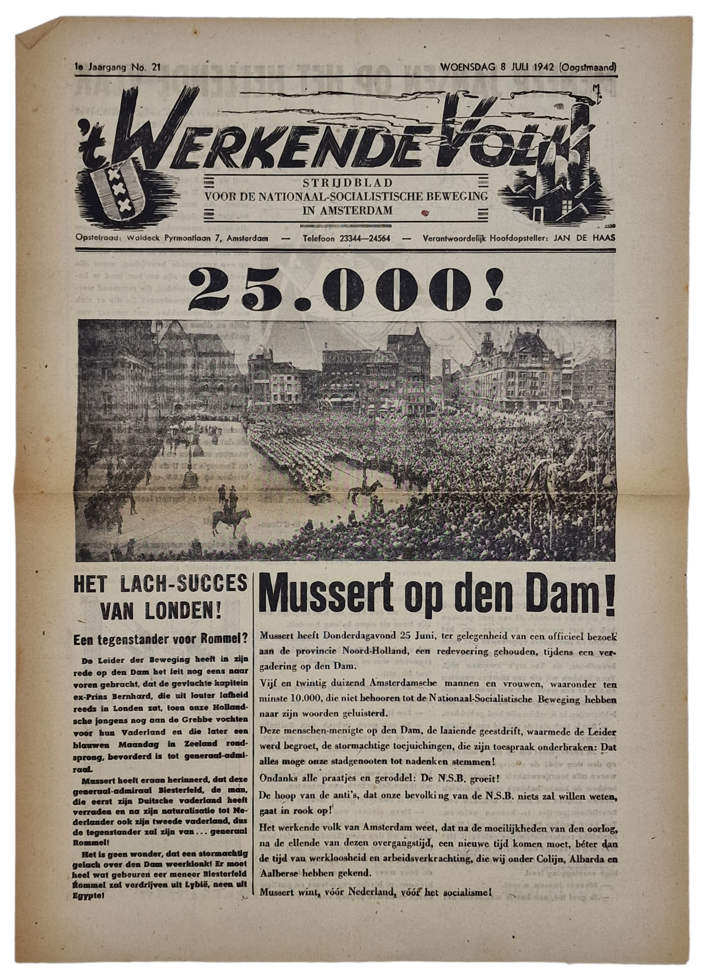 Original WW2 Dutch Collaboration NSB Newspaper - 't Werkende Volk, 1st Year No. 21 (1942)