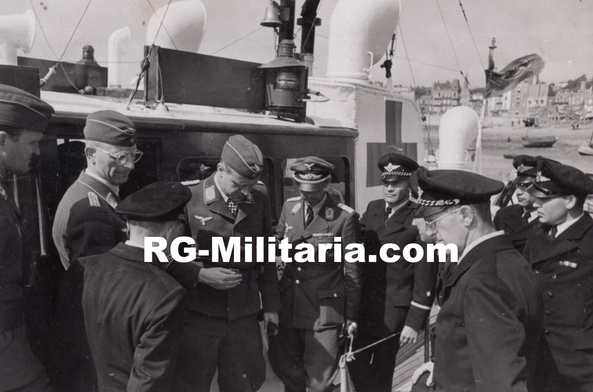 Original WW2 German Photo - Luftwaffe Ritterkreuzträger, Knights cross wearer with Seenotdienst in Le Havre, France (1940)