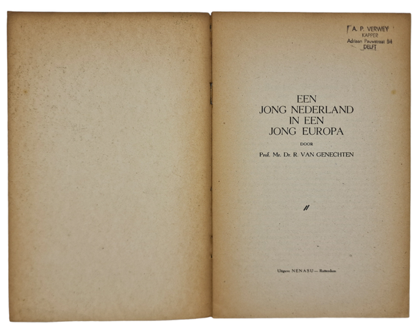 Original WW2 Dutch Collaboration NSB Brochure - Jong Nederland in een Jong Europa, R. van Genechten (1942)