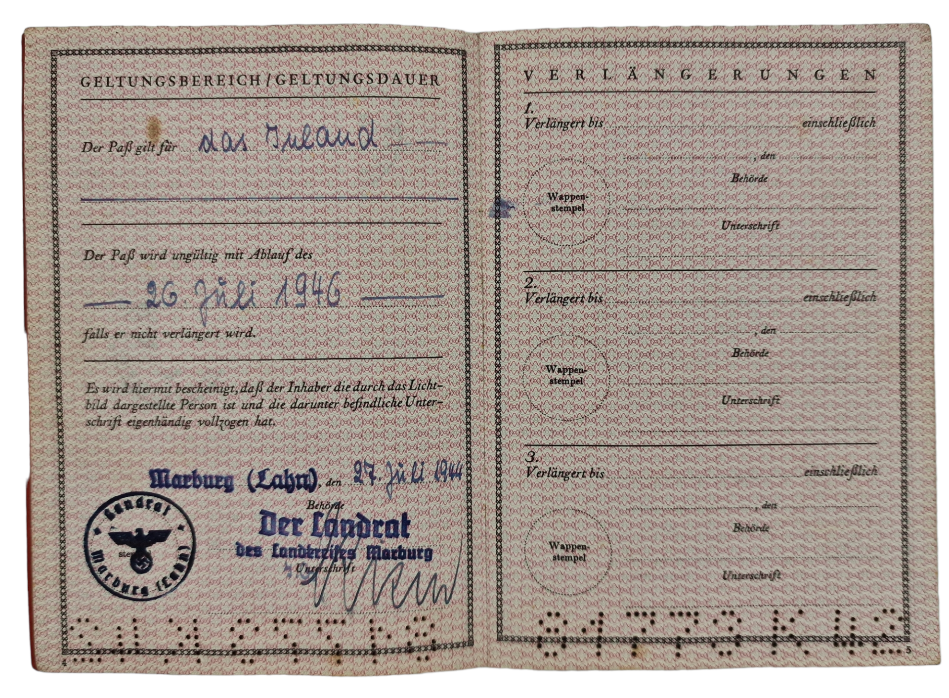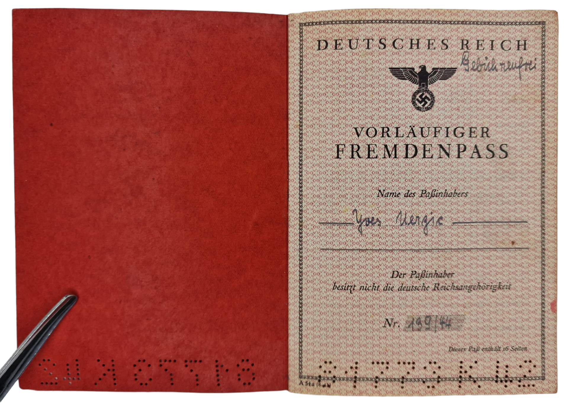 Original WW2 German Document - Vorläufiger Fremdenpass, Riec-sur-Belon, France (1944)