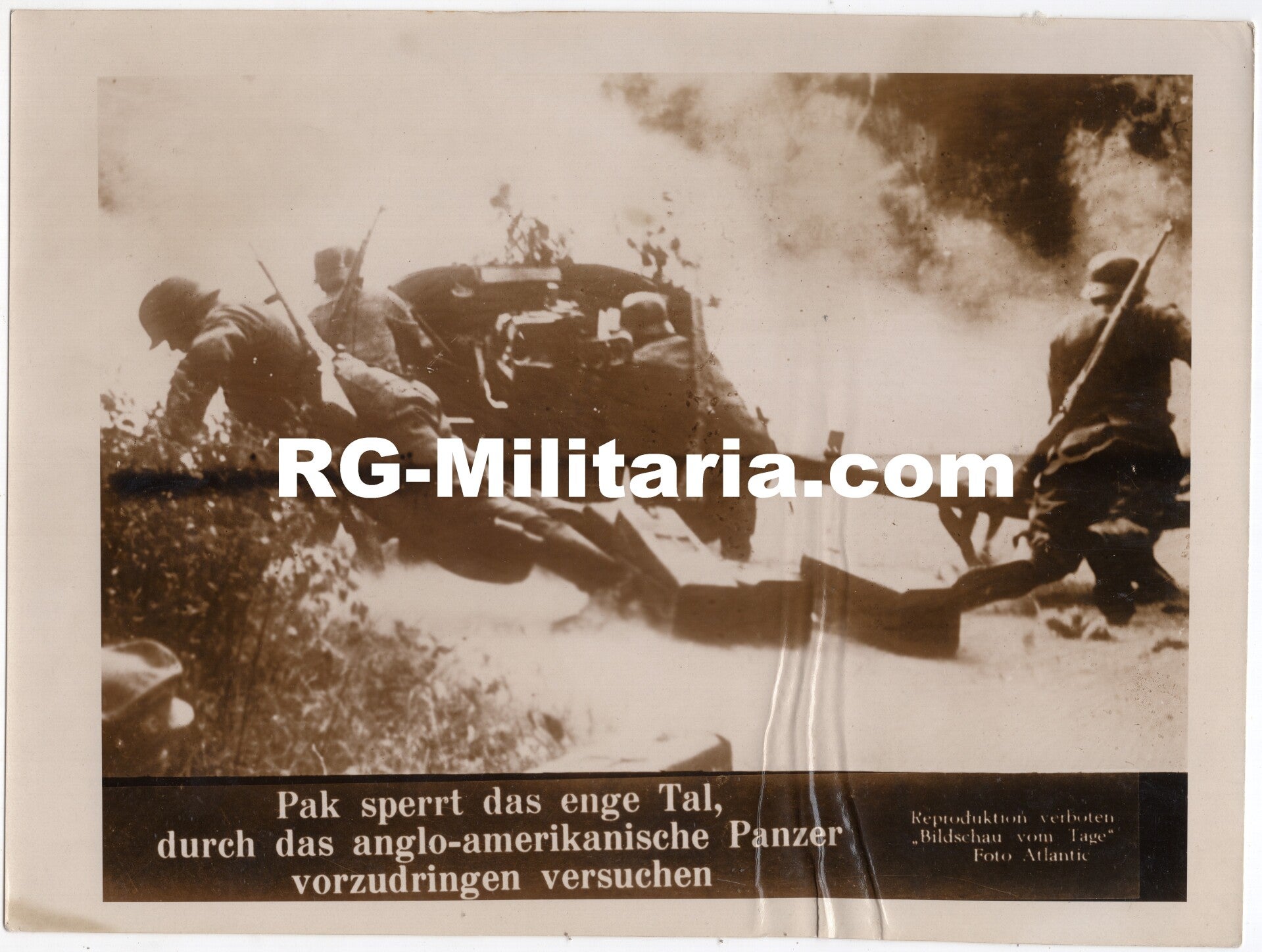 Original WW2 German Press Photo - German PAK fighting against Allied Panzer tanks