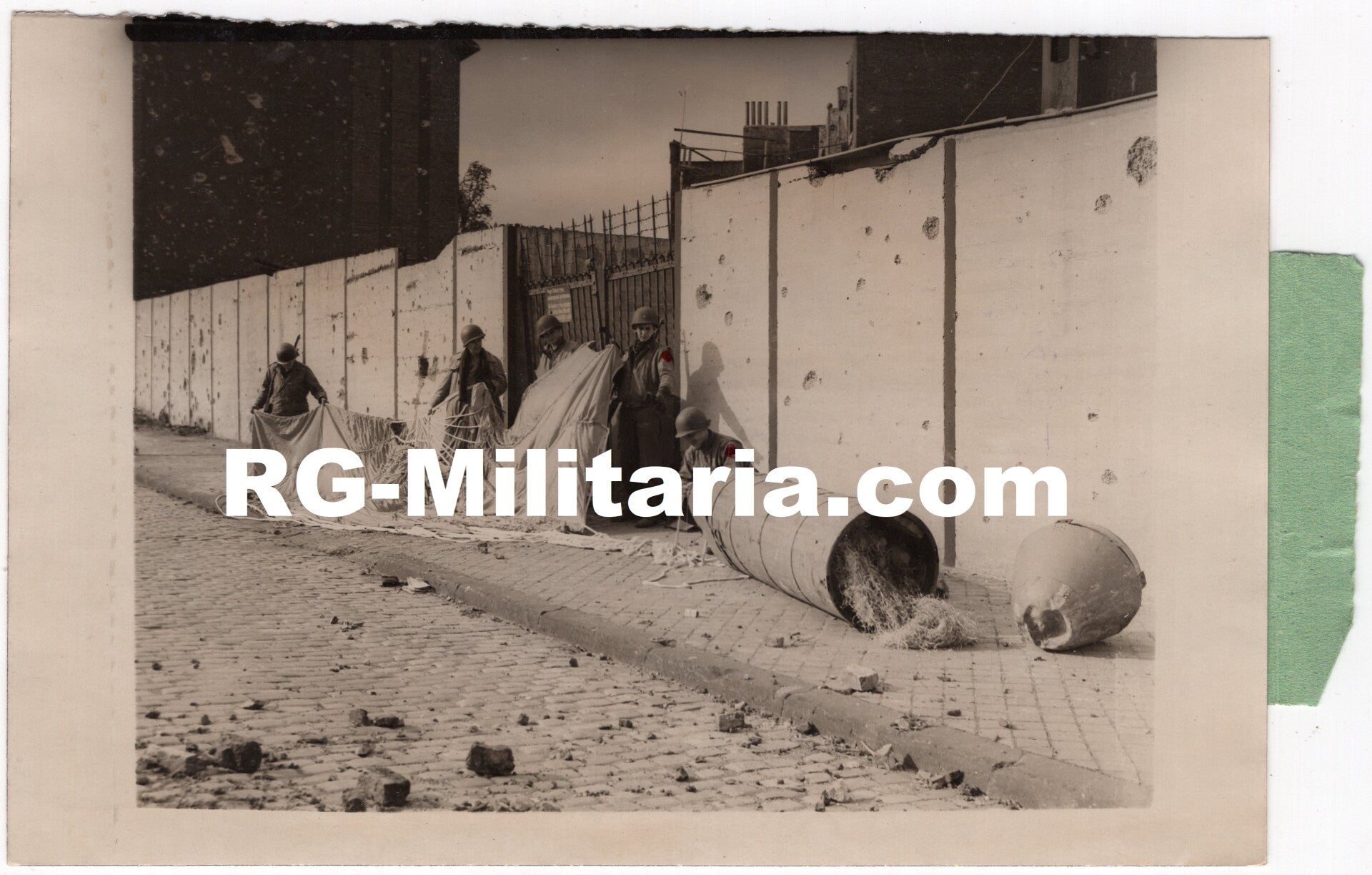 Originele Wo2 Amerikaanse Persfoto - Amerikaanse GI's hebben een container met Panzerfausts gevonden, Aachen (1944)
