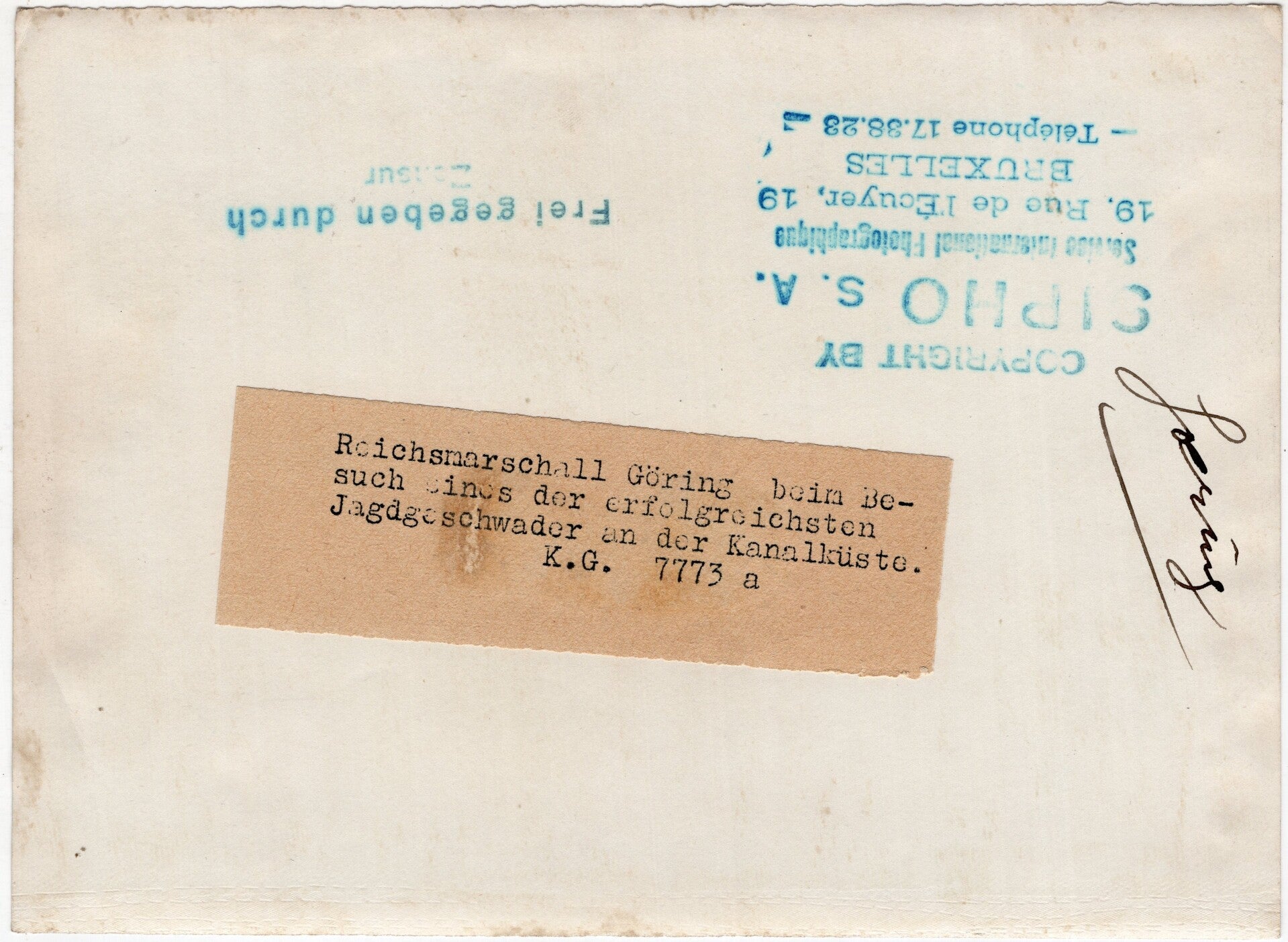 Originele Wo2 Franse Persfoto - Luftwaffe Reichsmarschall Hermann Göring op bezoek bij piloten
