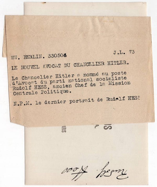 Originele Wo2 Franse Persfoto - Rudolf Hess portret