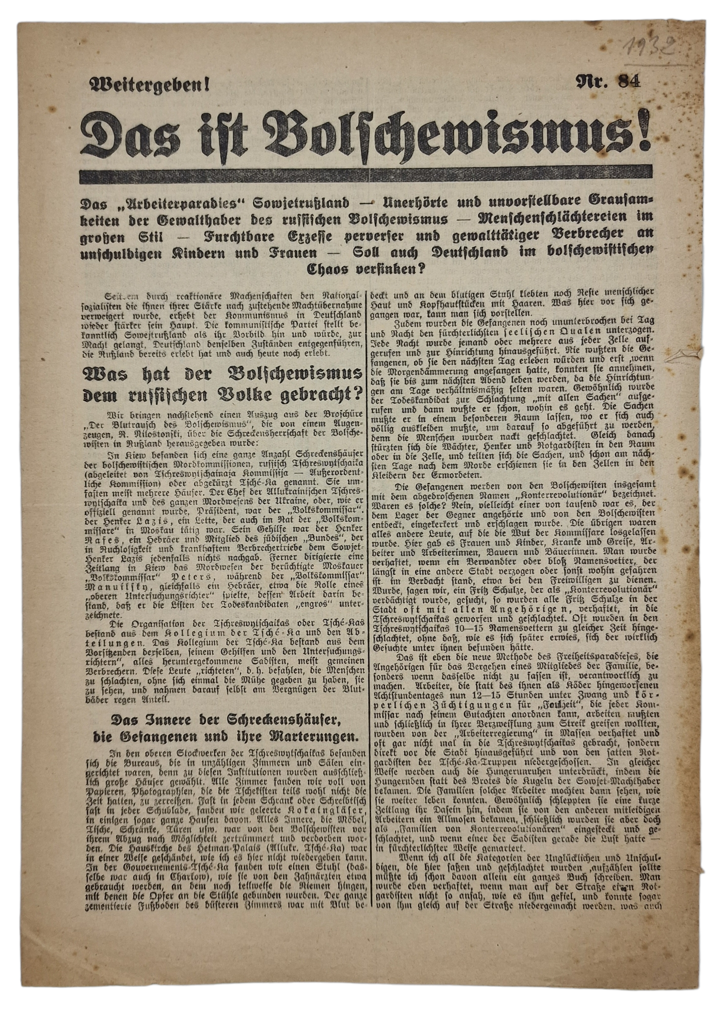 Original WW2 German NSDAP Document - Election Flyer ''Nr. 84 Das ist Bolschewismus!'' (1932)