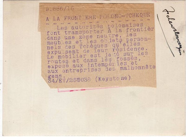 Originele Wo2 Franse Persfoto - Polen verwijderen Tsjechische inboedels naar de straten (1939)