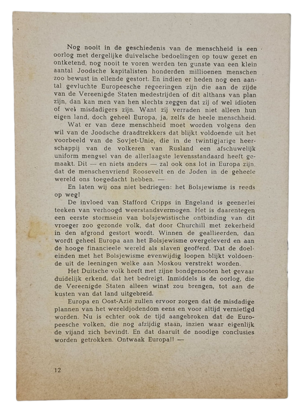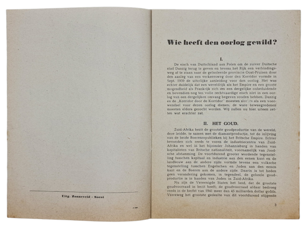 Original WW2 Dutch Collaboration NSB Brochure - Wie heeft den oorlog gewild?, W. Wichers (1942)