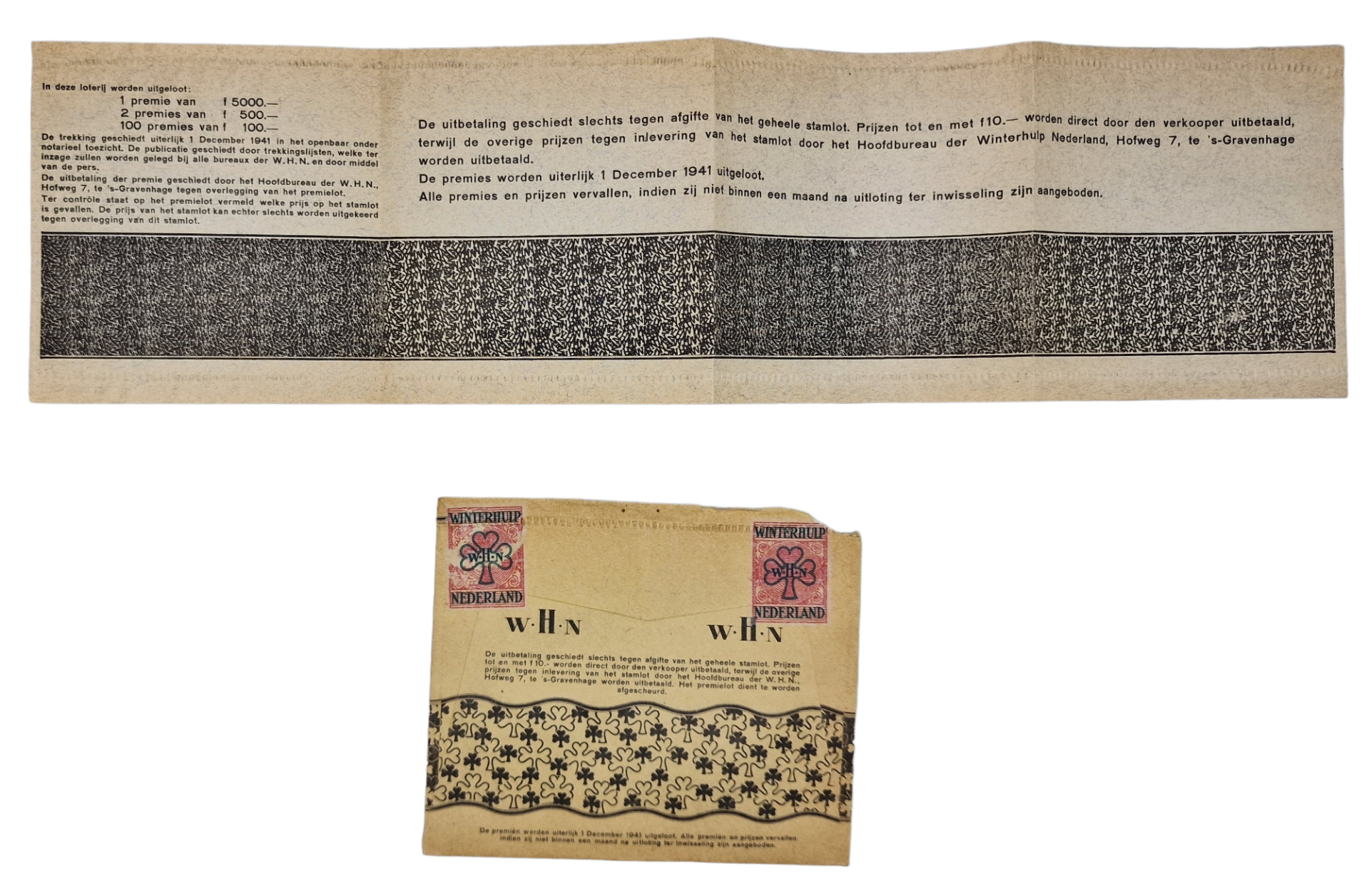 Origineel WO2 Nederlands Collaboratie WHN Document - Winterhulp Nederland loterij lot serie B (1941)