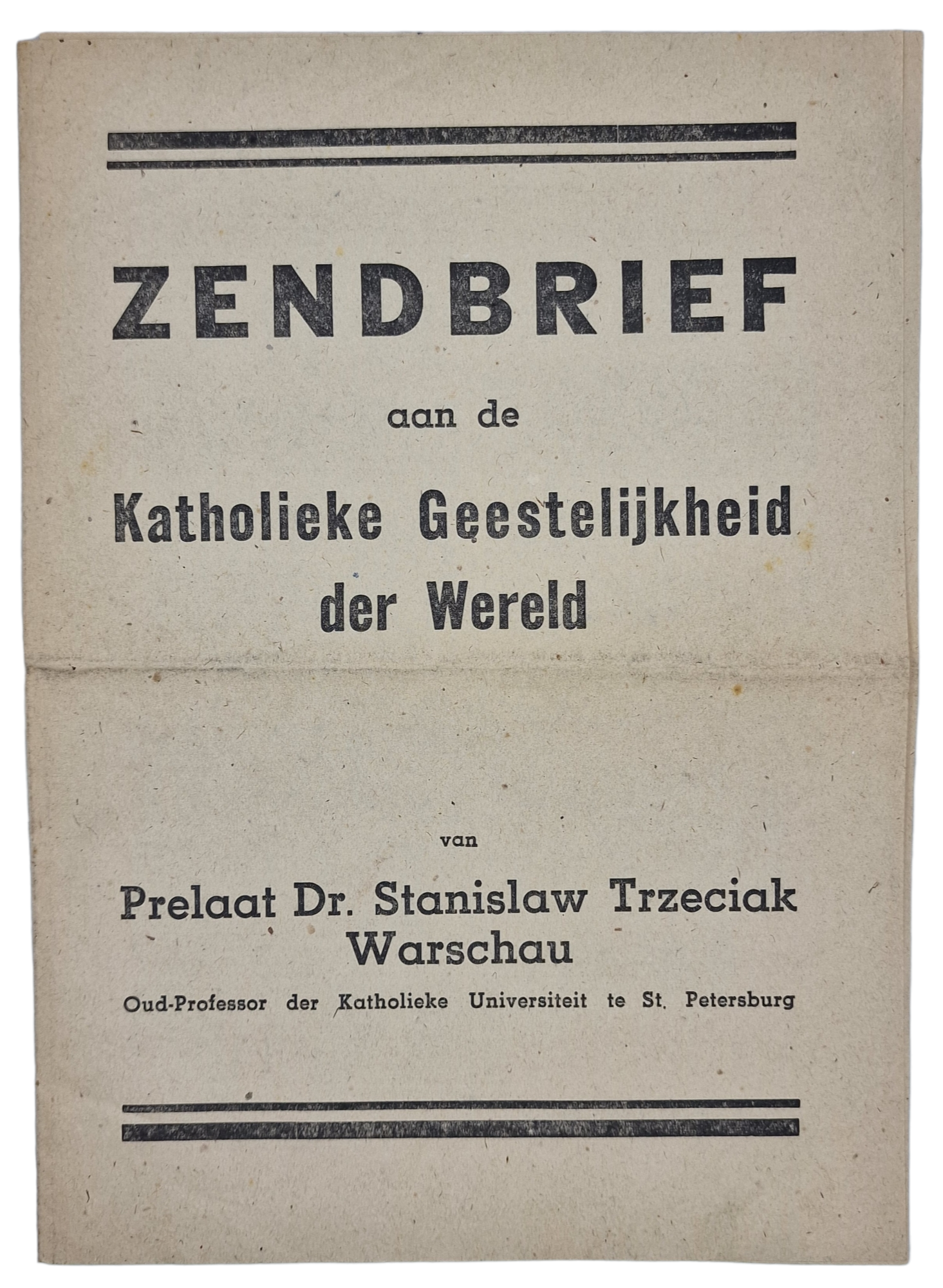 Original WW2 Dutch Collaboration Document - Zendbrief aan de Katholieke Geestelijkheid der Wereld, Prelaat Dr. Stanislaw Trzeciak Warschau