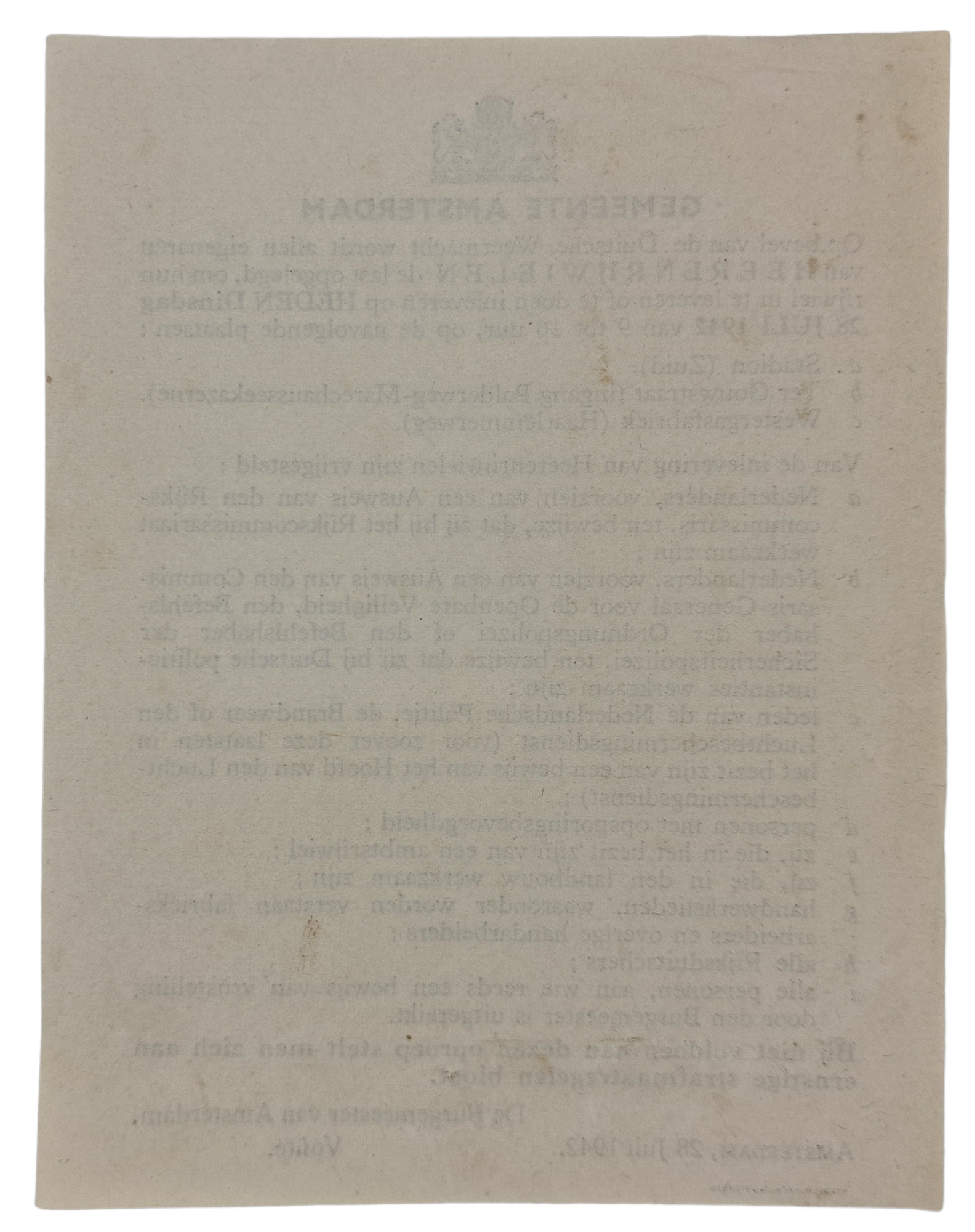 Original WW2 Dutch Document - Turn in all bicycles, Amsterdam (1942)