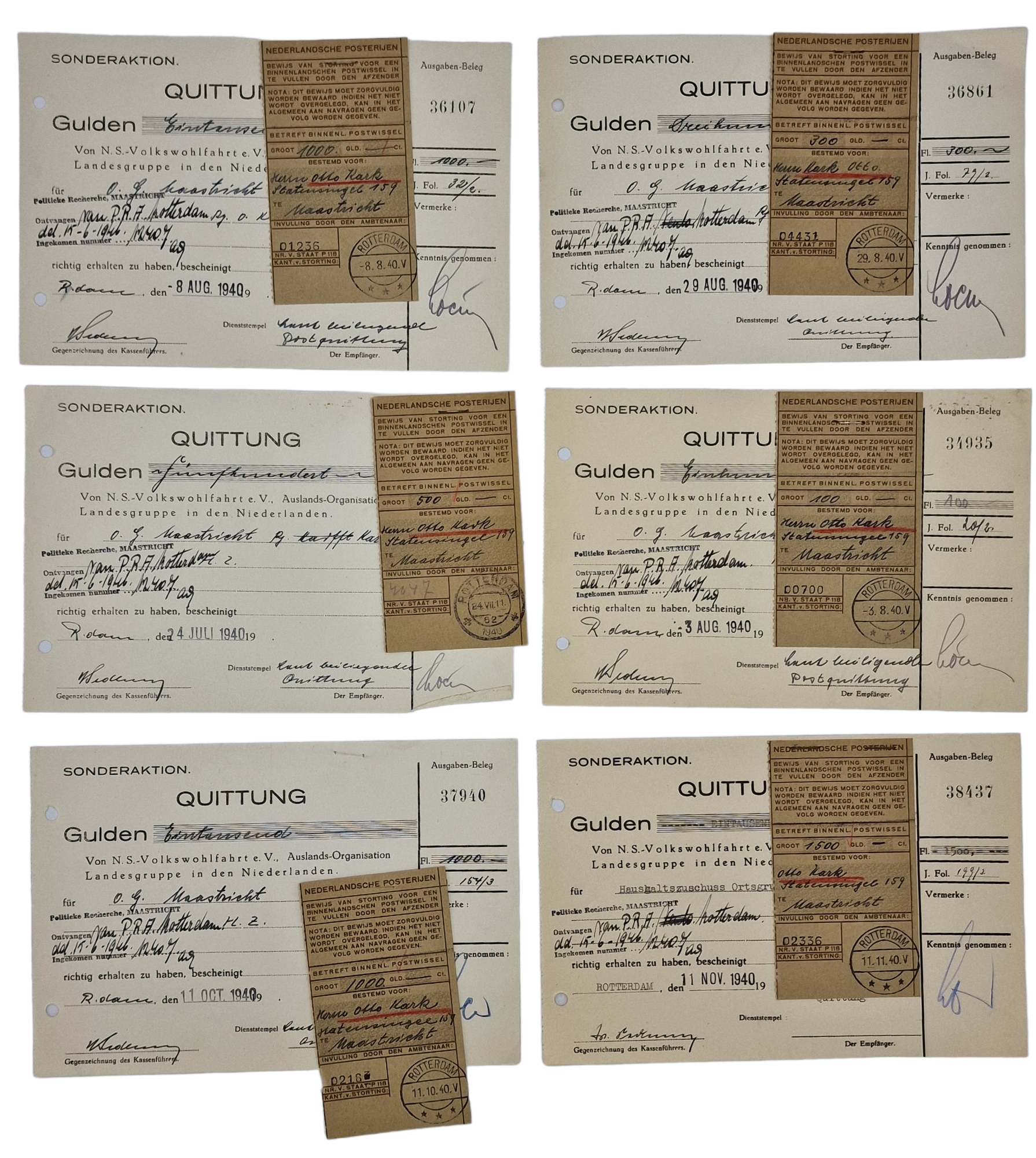 Originele Wo2 Nederlandse Collaboratie Document - Ortsgruppe der NSDAP Maastricht, NS Volkswohlfahrt document set (1940 1945)