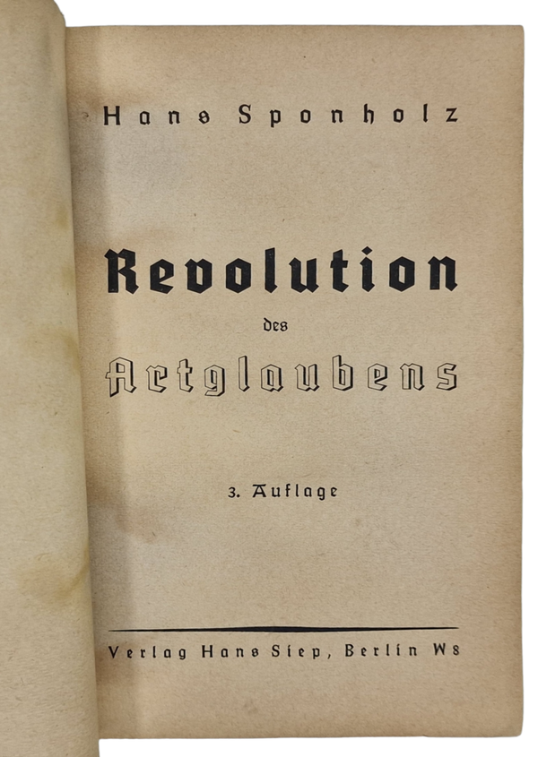 Original WW2 German Brochure - Revolution des Artglaubens, Hans Sponholz