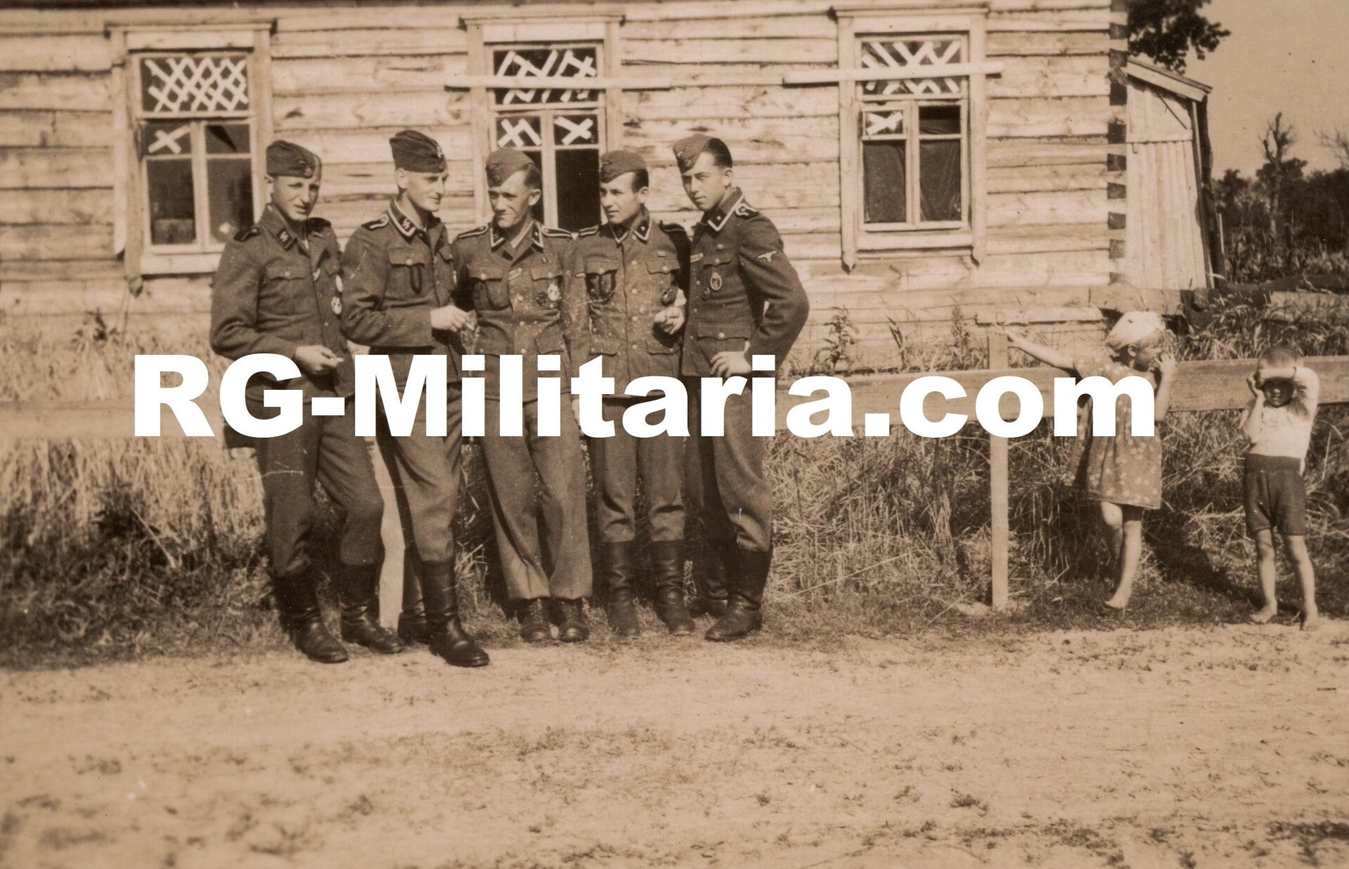Original WW2 German Waffen SS Photo - German Waffen SS soldiers with Heeres Flakabzeichen