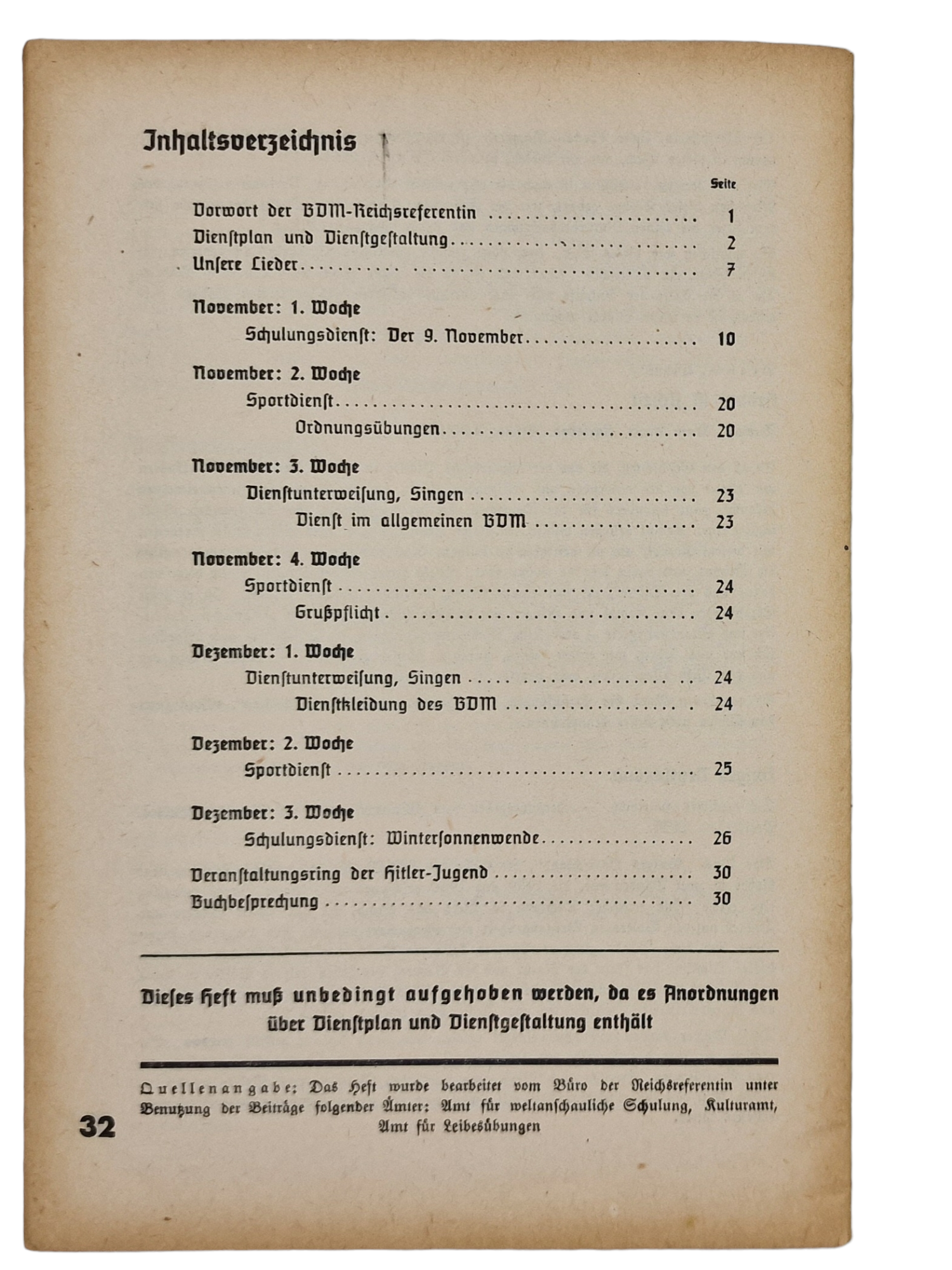 Original WW2 German HJ Brochure - Hitler Jugend BDM Unser Dienst November/December (1940)