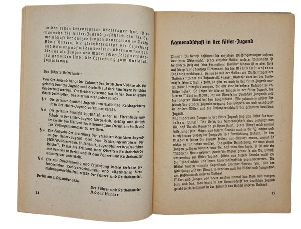 Original WW2 German HJ Brochure - Hitler Jugend Dienstvorschrift Vorschrift über den Jungvolkdienst (1938)