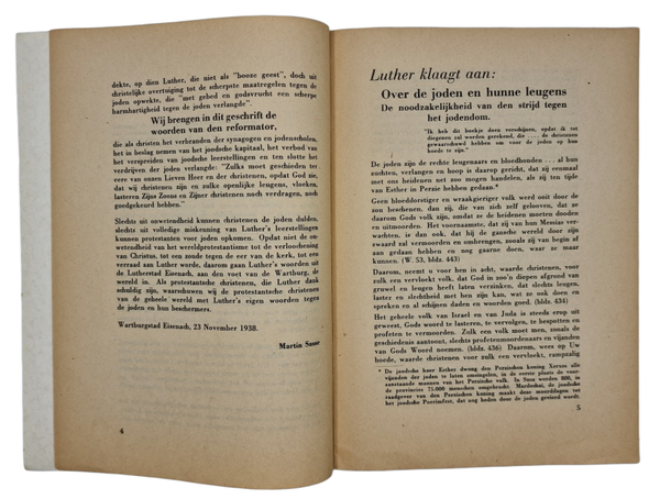 Original WW2 Dutch Antisemitic Brochure - Martin Luther over de Joden! Martin Sasse, Eisenach (1938)