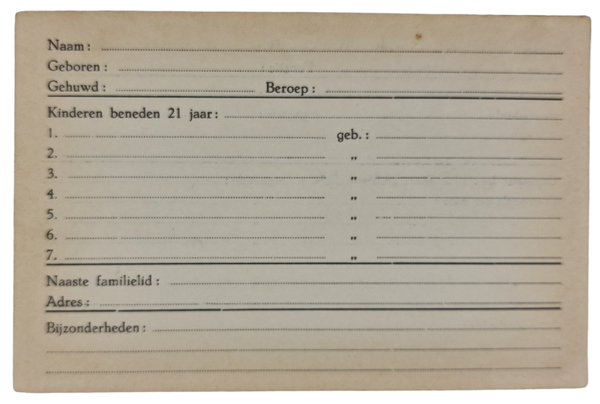 Registratiekaart voor een Nederlandse tolk in geallieerde dienst. Naaf van ten Dijck
