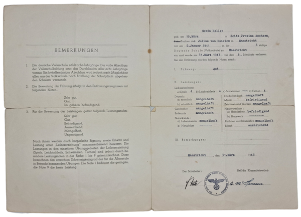 Original WW2 Dutch Collaboration NSV Document - Rapport Jugendflege, Maastricht (1943 1944)