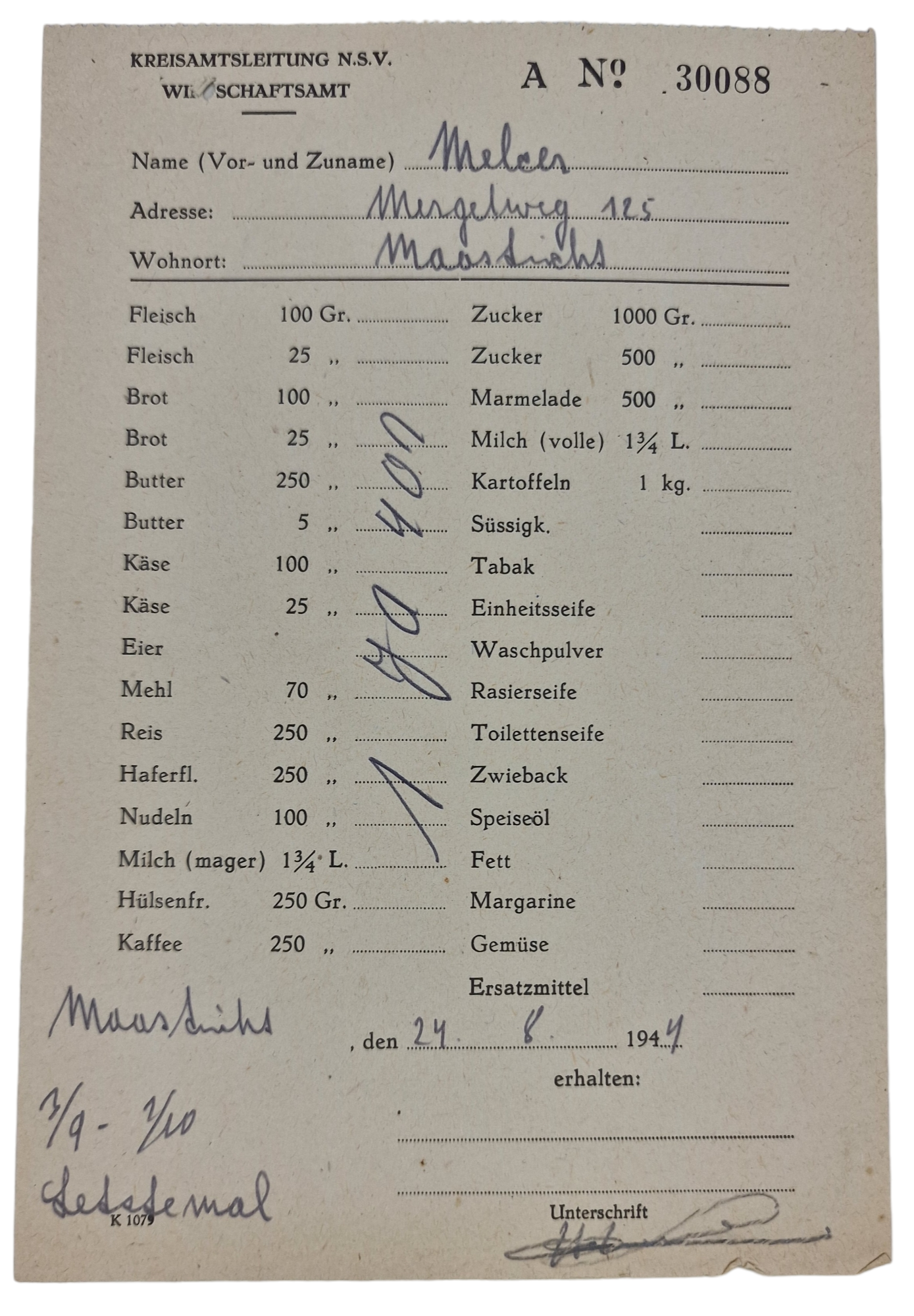Original WW2 Dutch Collaboration NSV Document - Kreisamtleitung NSV Wirtschaftsamt Maastricht (1944)