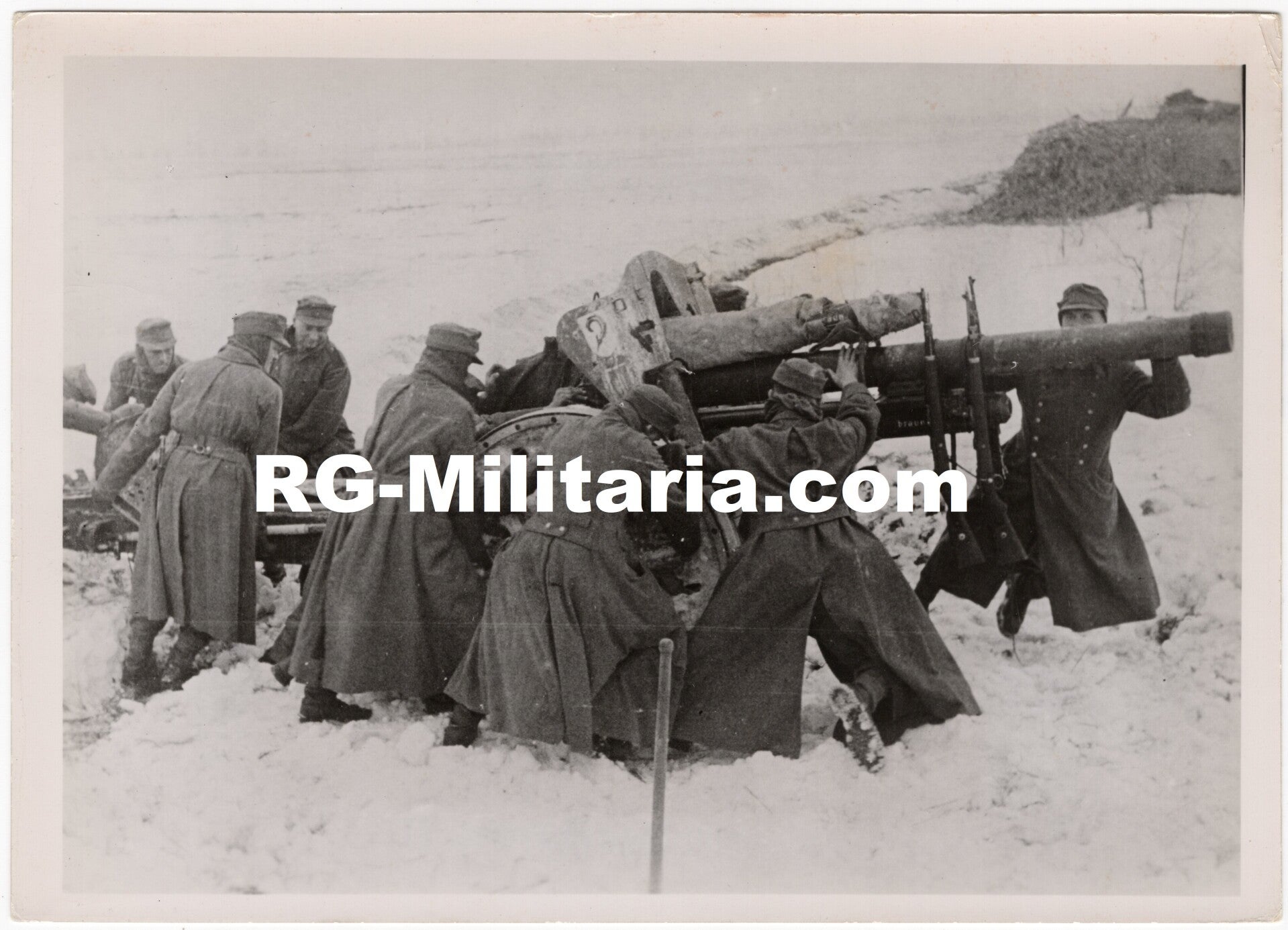 Originele Wo2 Duitse Persfoto - Duitse militairen met een PAk kanon aan het oostfront (1942)