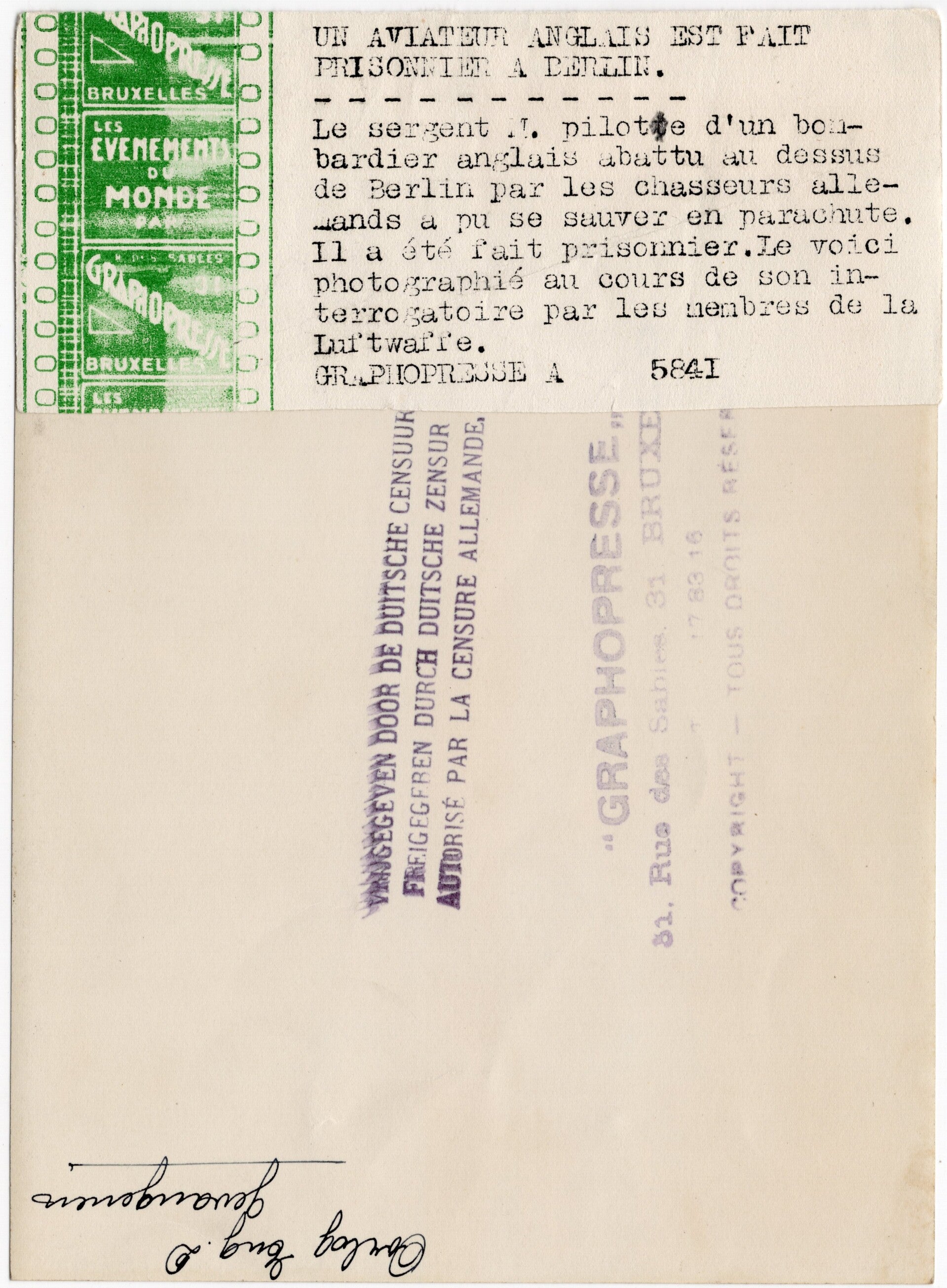 Original WW2 French Press Photo - Captured British POW RAF pilot, Berlin