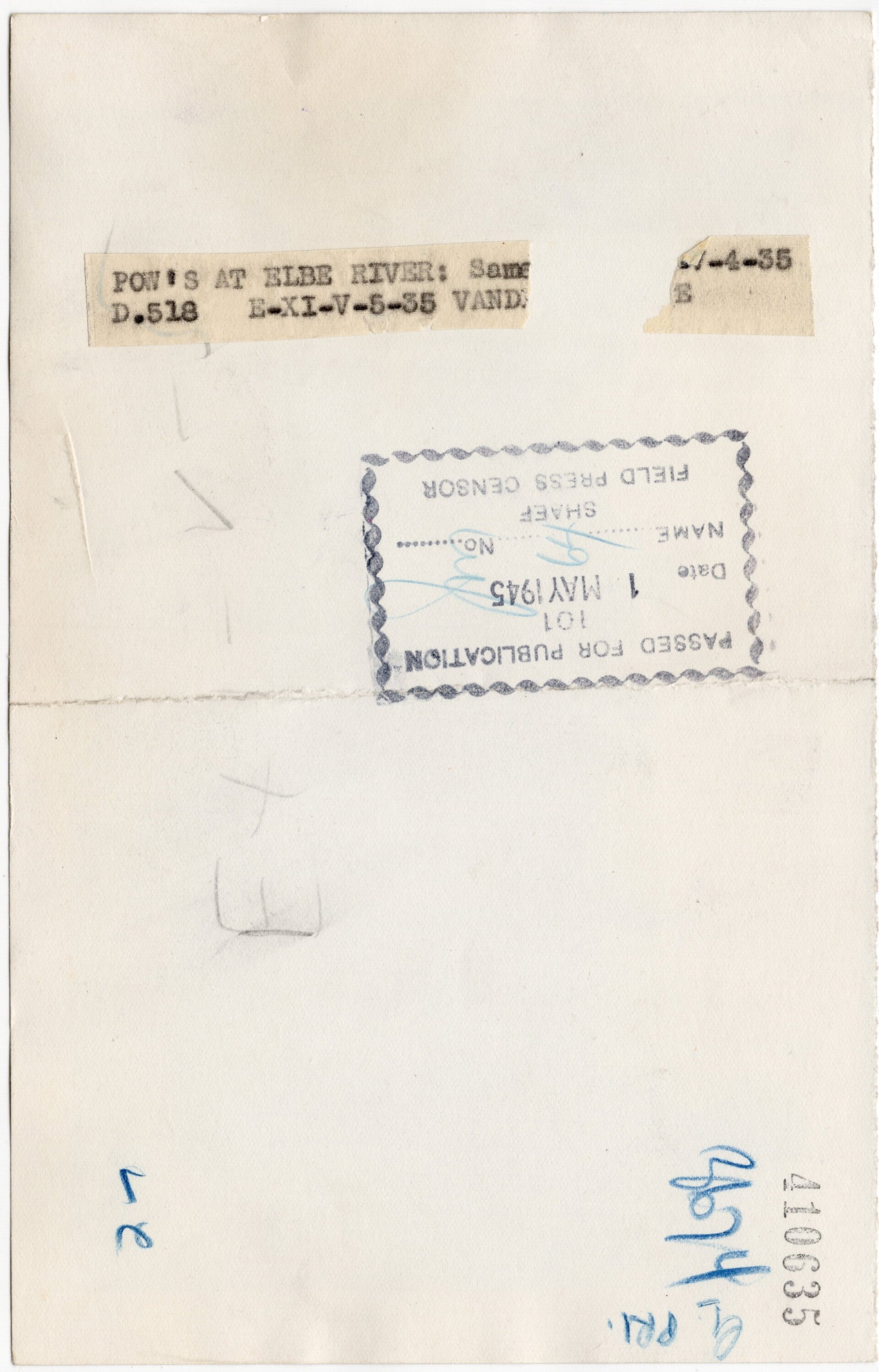 Originele Wo2 Amerikaanse Persfoto - Amerikaanse militairen nemen Duitse POW militairen gevangen bij de Elbe (1945)