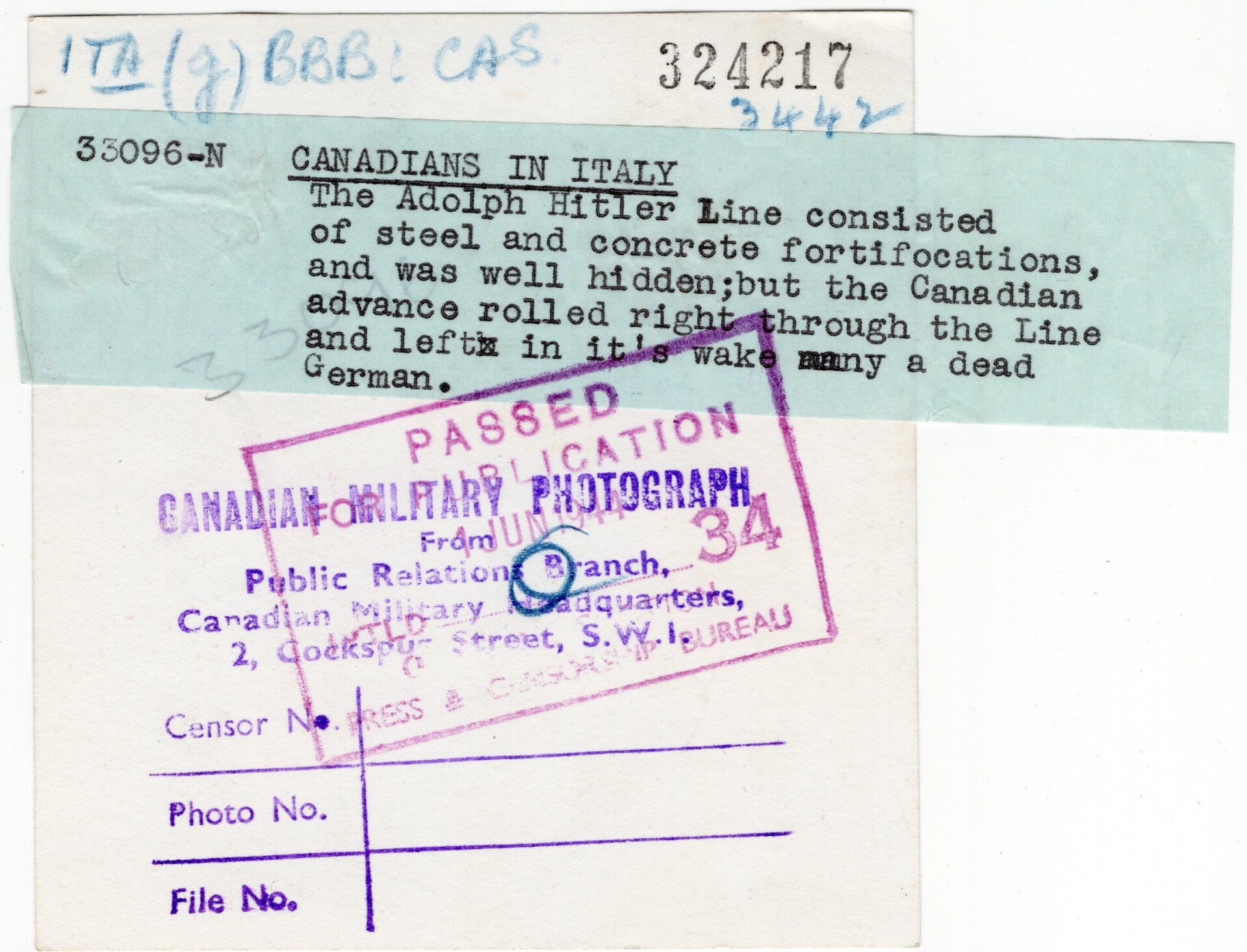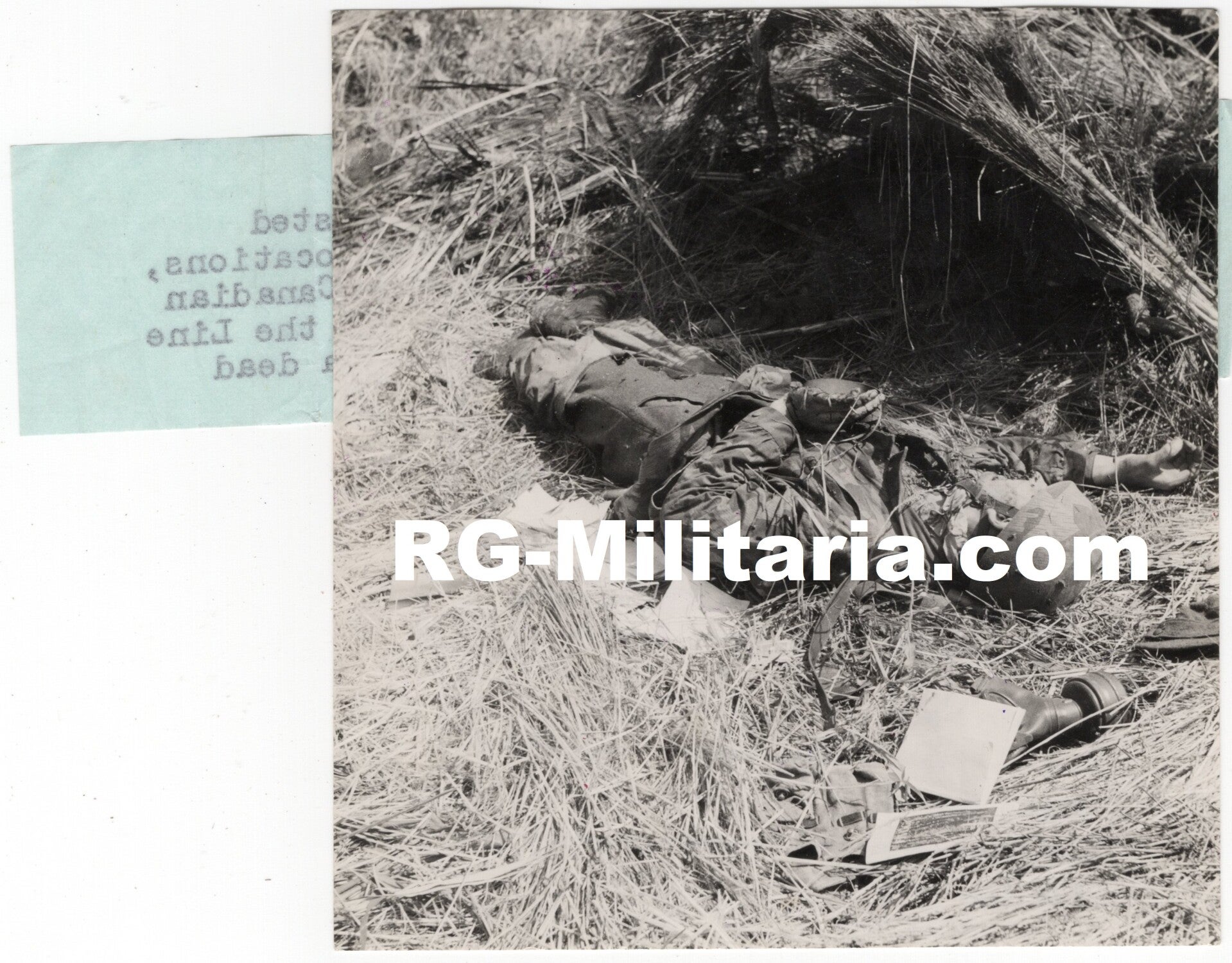 Original WW2 Canadian Press Photo - KIA Dead German Fallschirmjäger soldier on the Hitler line, Italy (1944)