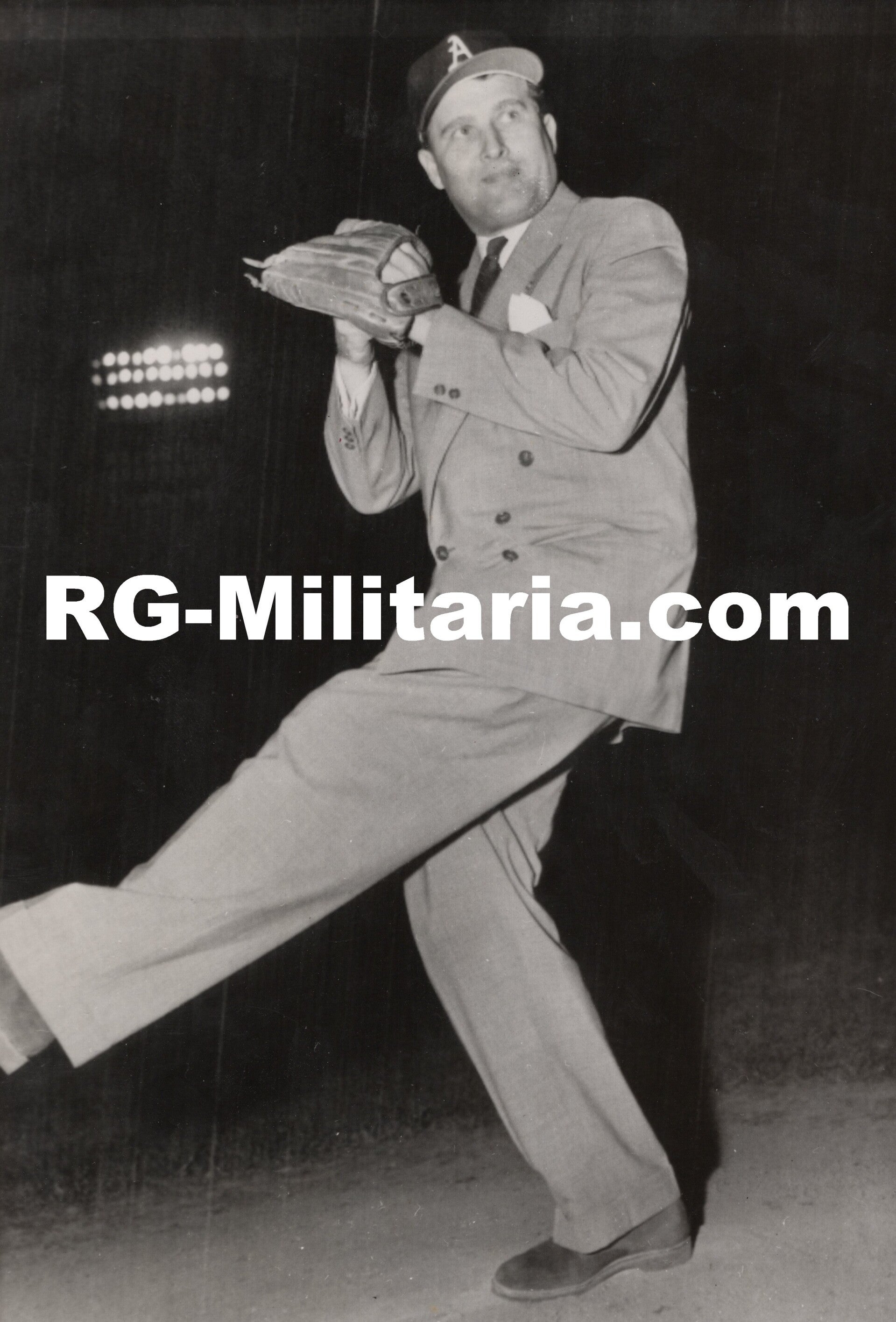 Original WW2 US Press Photo - Dr. Werner von Braun launching a baseball in Nashville, USA (1958)