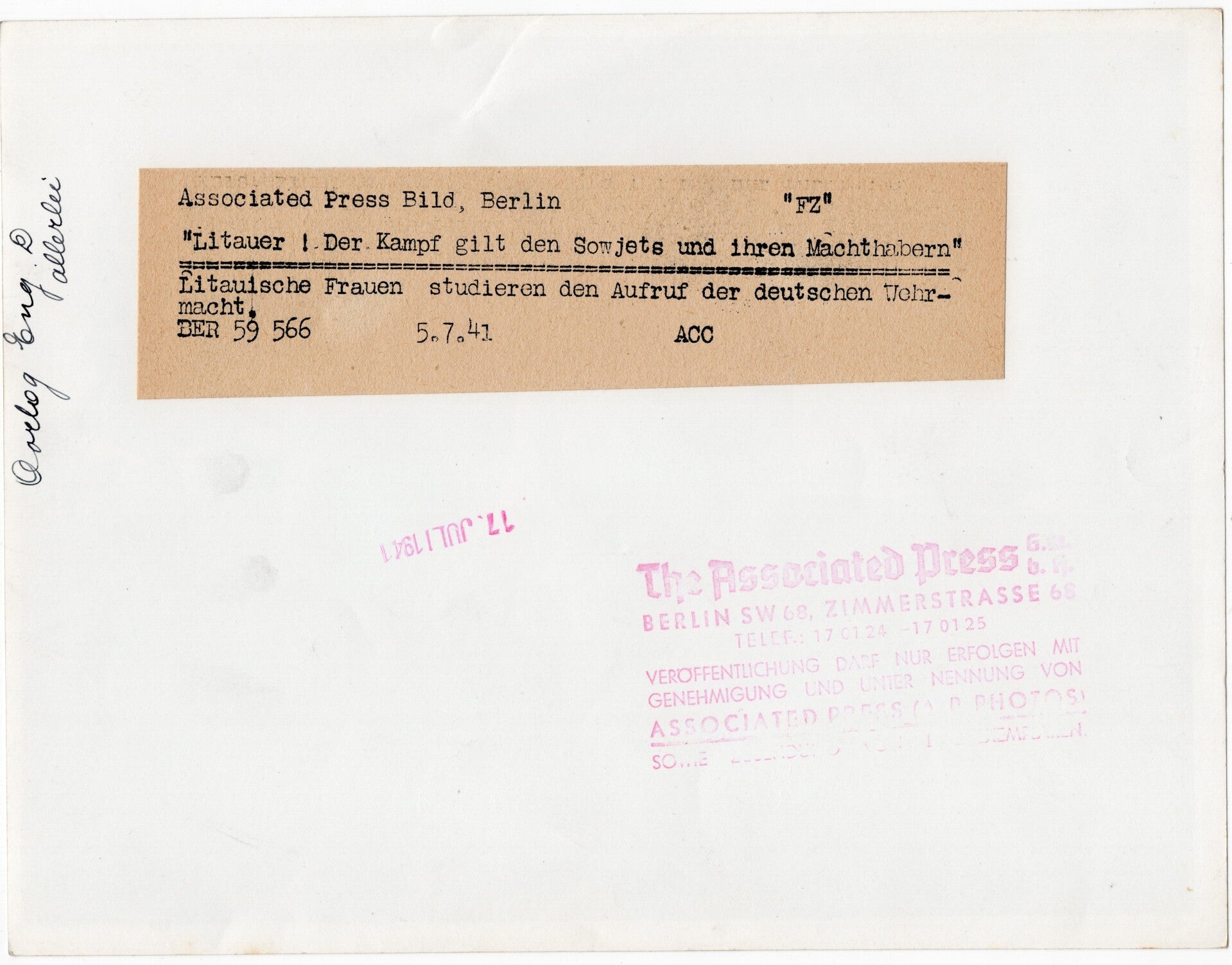 Originele Wo2 Duitse Persfoto - Litouwse vrouwen kijken naar een Duitse poster (1941)
