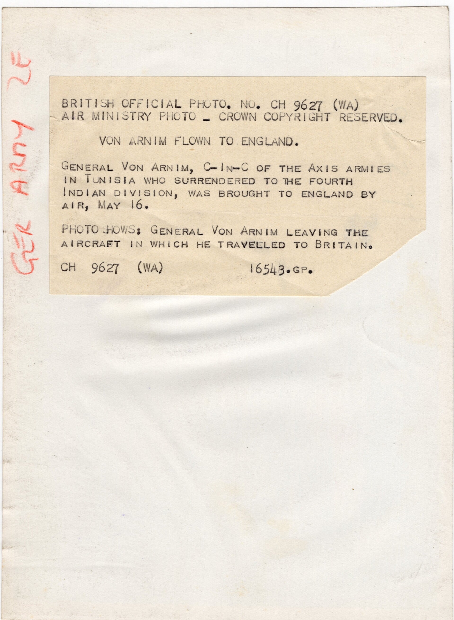 Originele Wo2 Britse Persfoto - Gevangengenomen POW Generaal Hans-Jürgen von Arnim aangekomen in Engeland (1944)