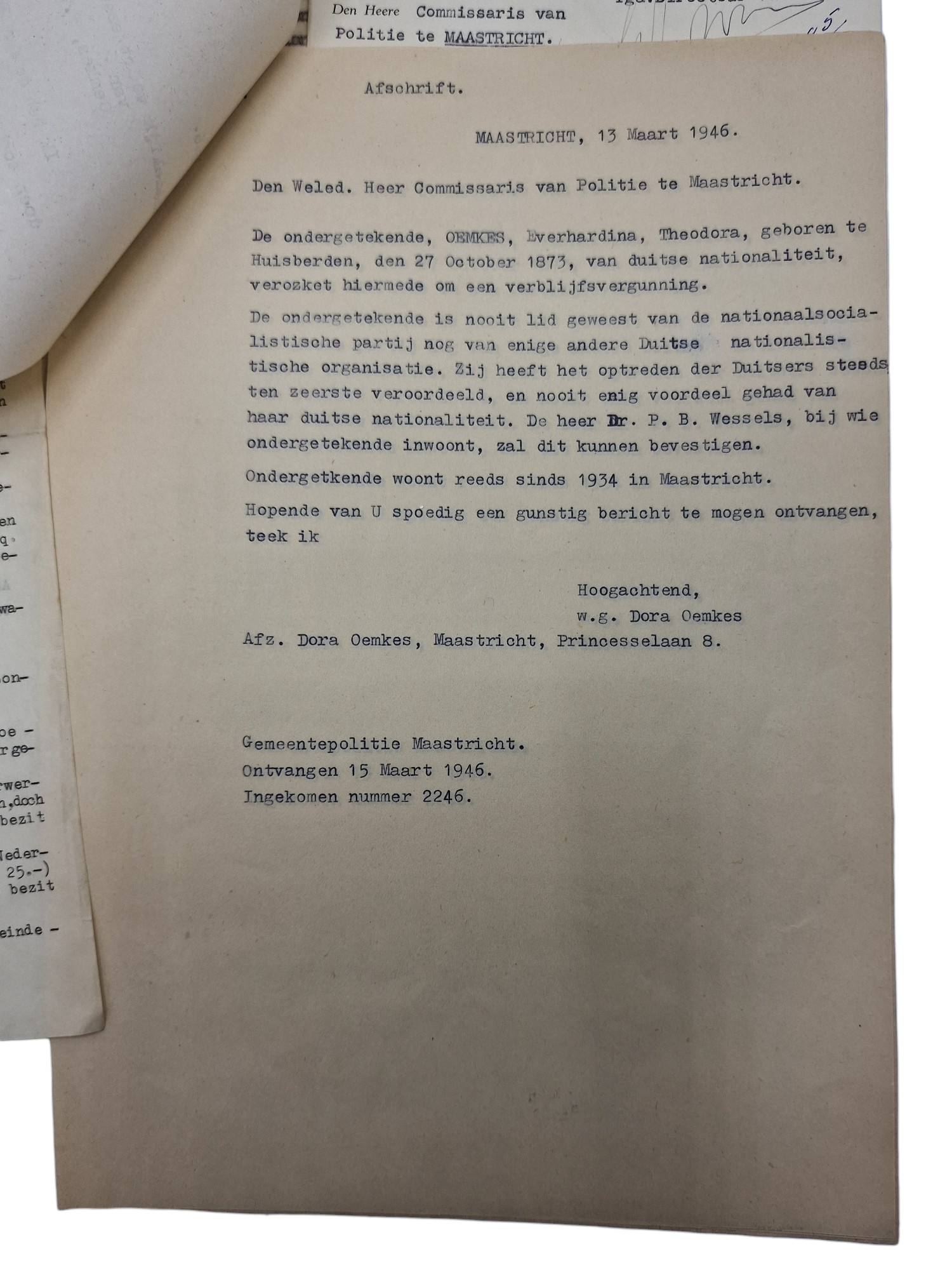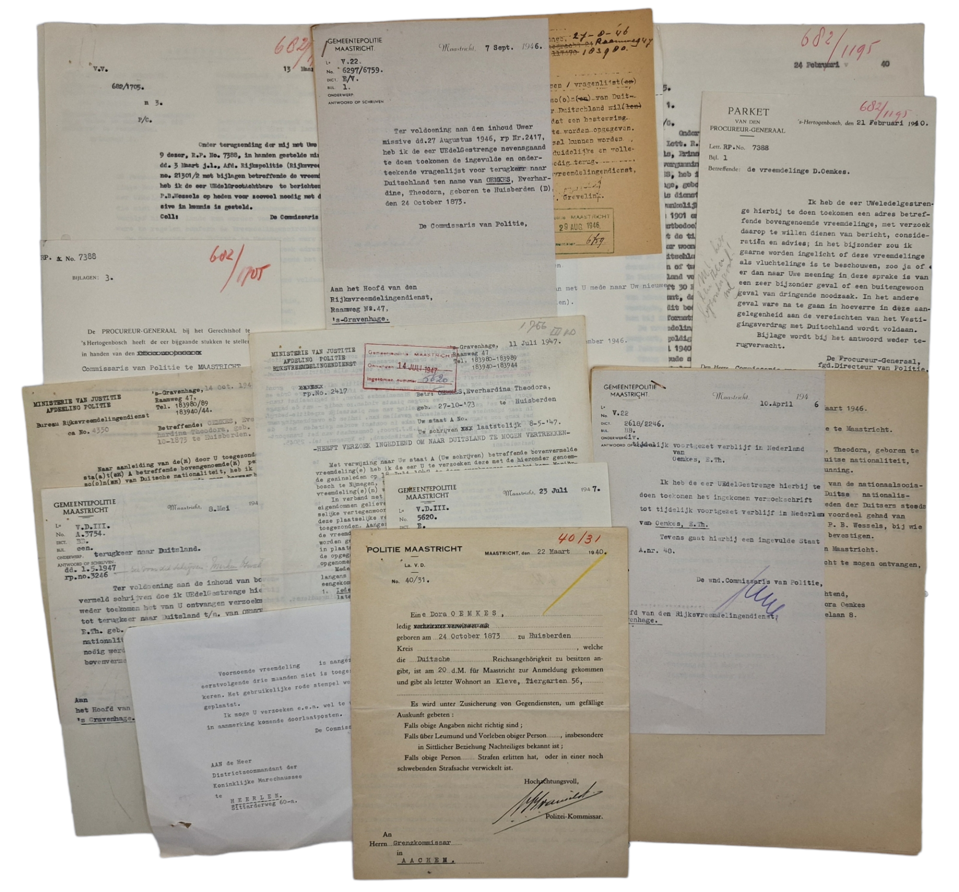 Original WW2 Dutch Document - Police file German woman migrating back to Germany Maastricht, Aachen (1947)