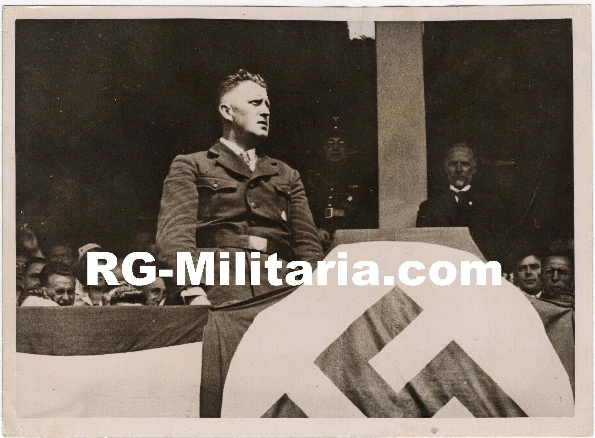 Original WW2 French Press Photo - Alois Spaniol speeching in Rudesheim, Saar