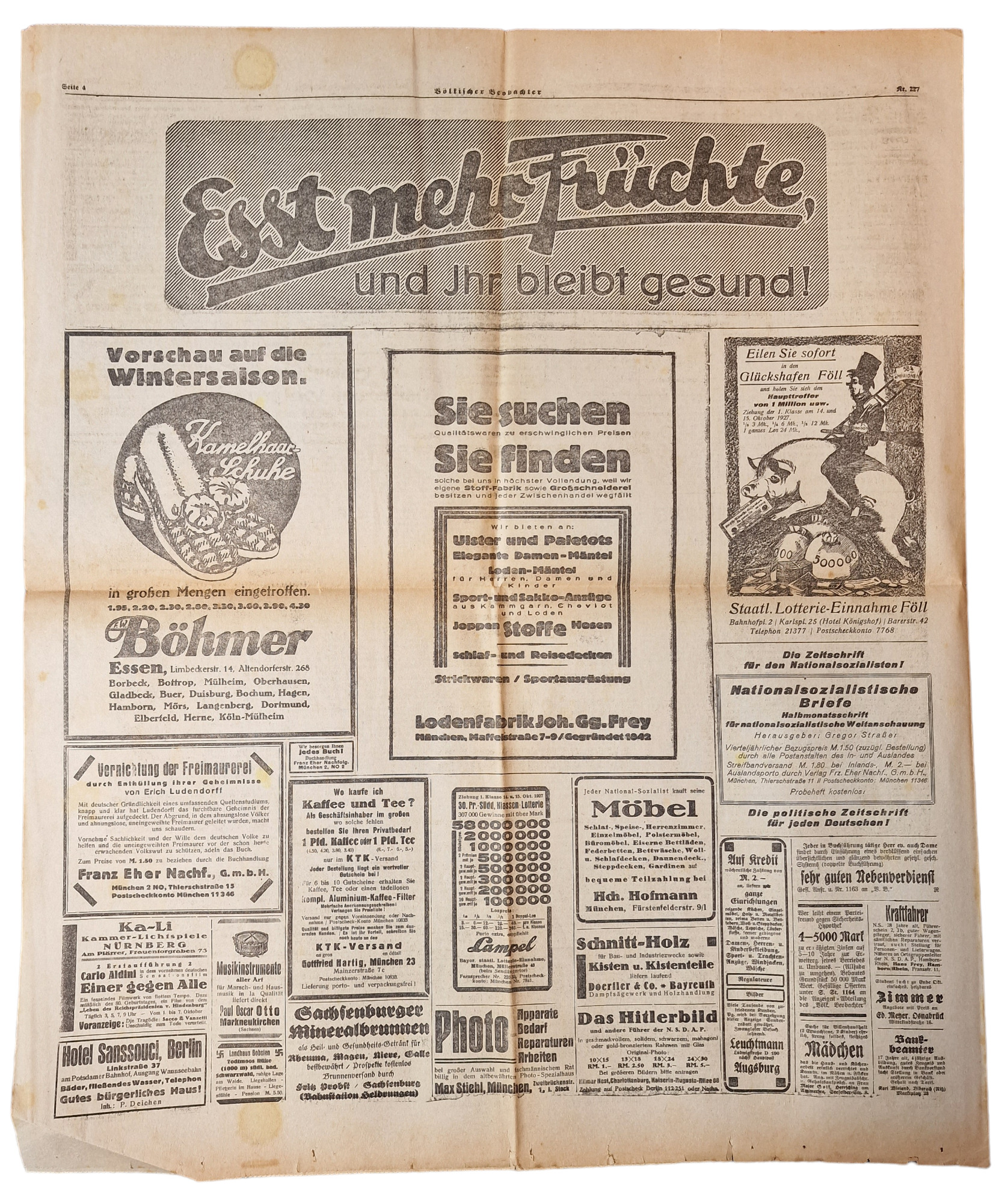 An early example of the Nazi newspaper; the Völkischer Beobachter.