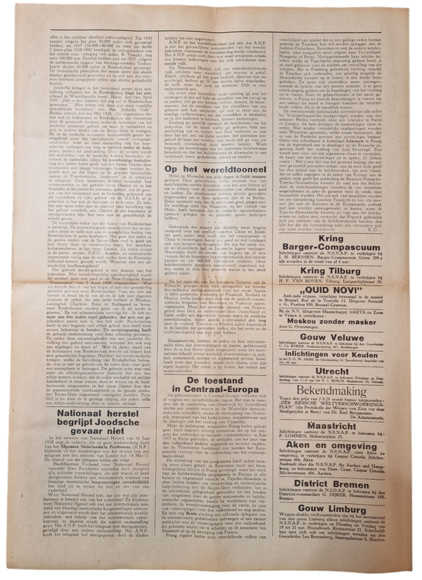 Original WW2 Dutch Collaboration NSNAP Newspaper - De Nederlandsche Nationaal Socialist No. 173 (1938)