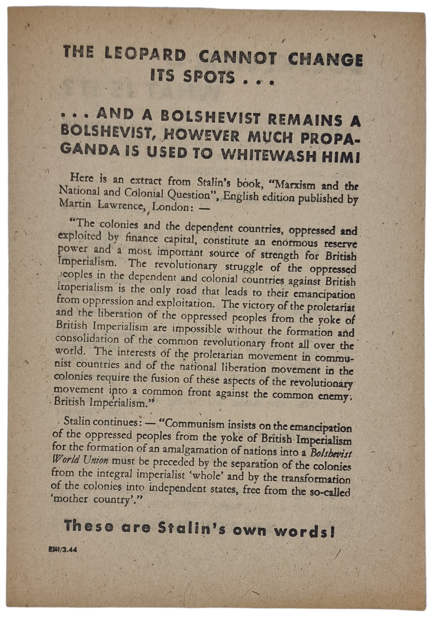 Original WW2 German Leaflet - EH1/3.44 Bolshevism What is it? (1944)