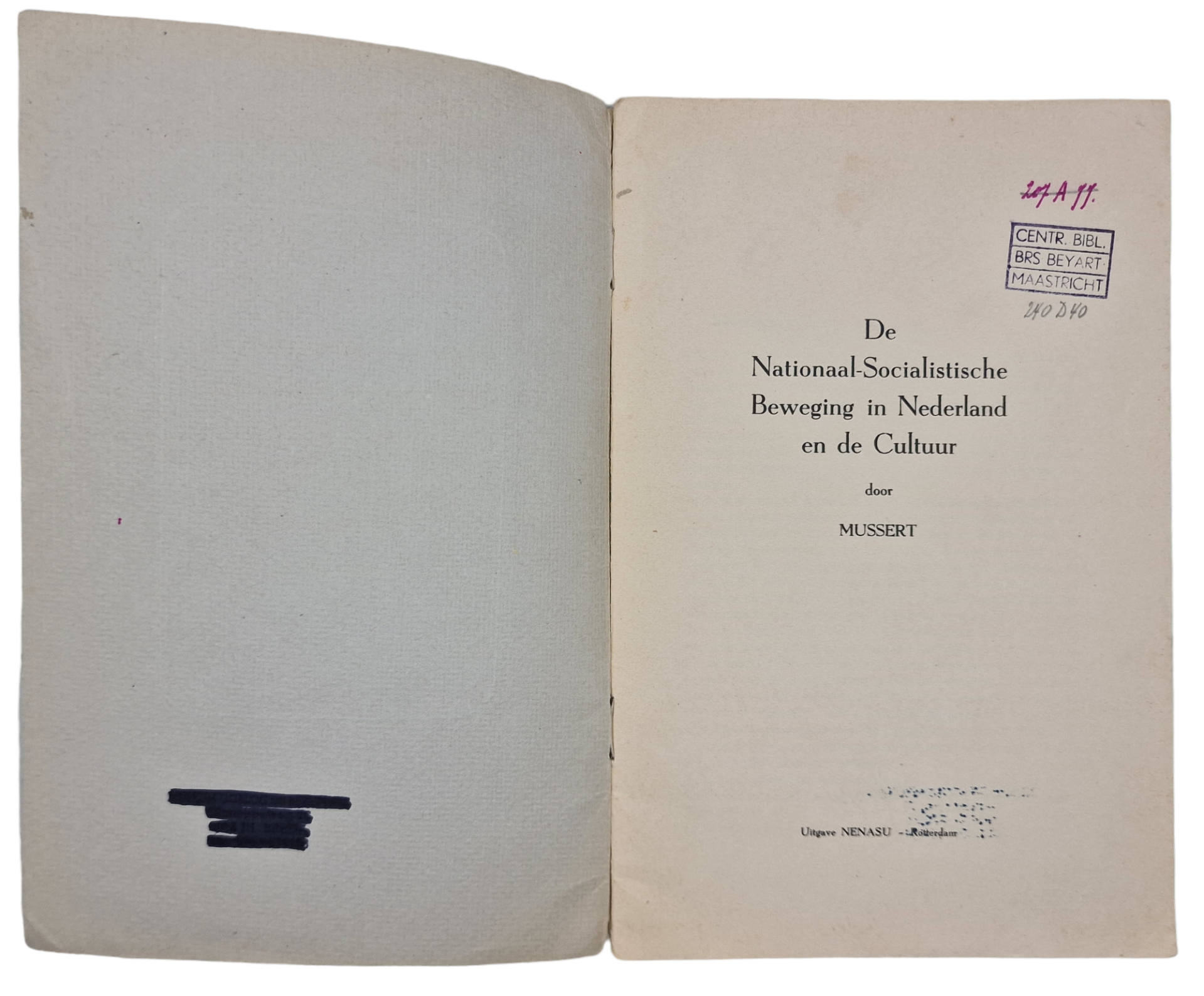 Original WW2 Dutch Collaboration NSB Brochure - De Nationaal-Socialistische Beweging in Nederland en de Cultuur, Anton Mussert