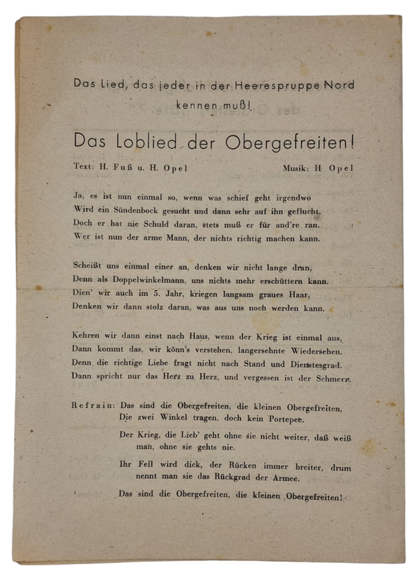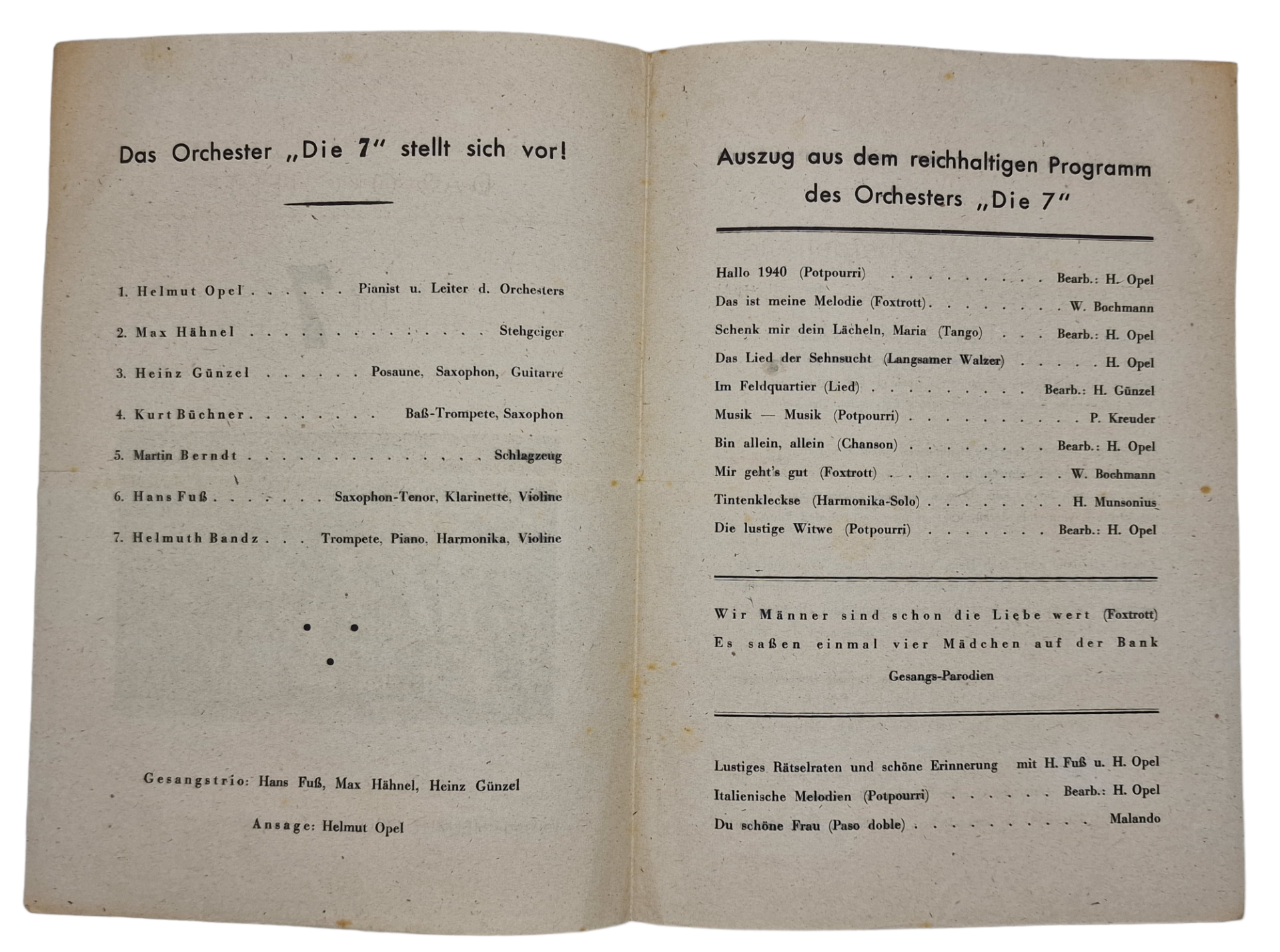 Original WW2 German Document - Das Orchester die 7, Helmut Opel, Feldpost 21507 (1940)