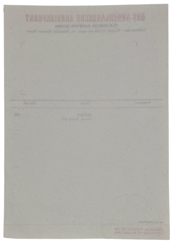 Original WW2 Dutch Collaboration NAF Document - Unused letter head Nederlandsche Arbeidsfront Hoorn (1943)