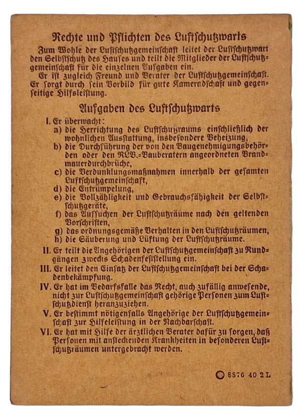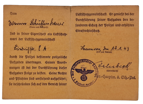 Original WW2 German Document - Ausweis für Luftschutzwarte Hannover (1943)