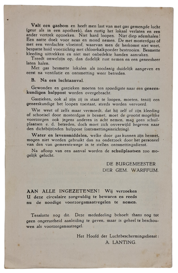 Original WW2 Dutch LBD Document - Luchtbeschermingsdienst Protection against air raids, Warffum